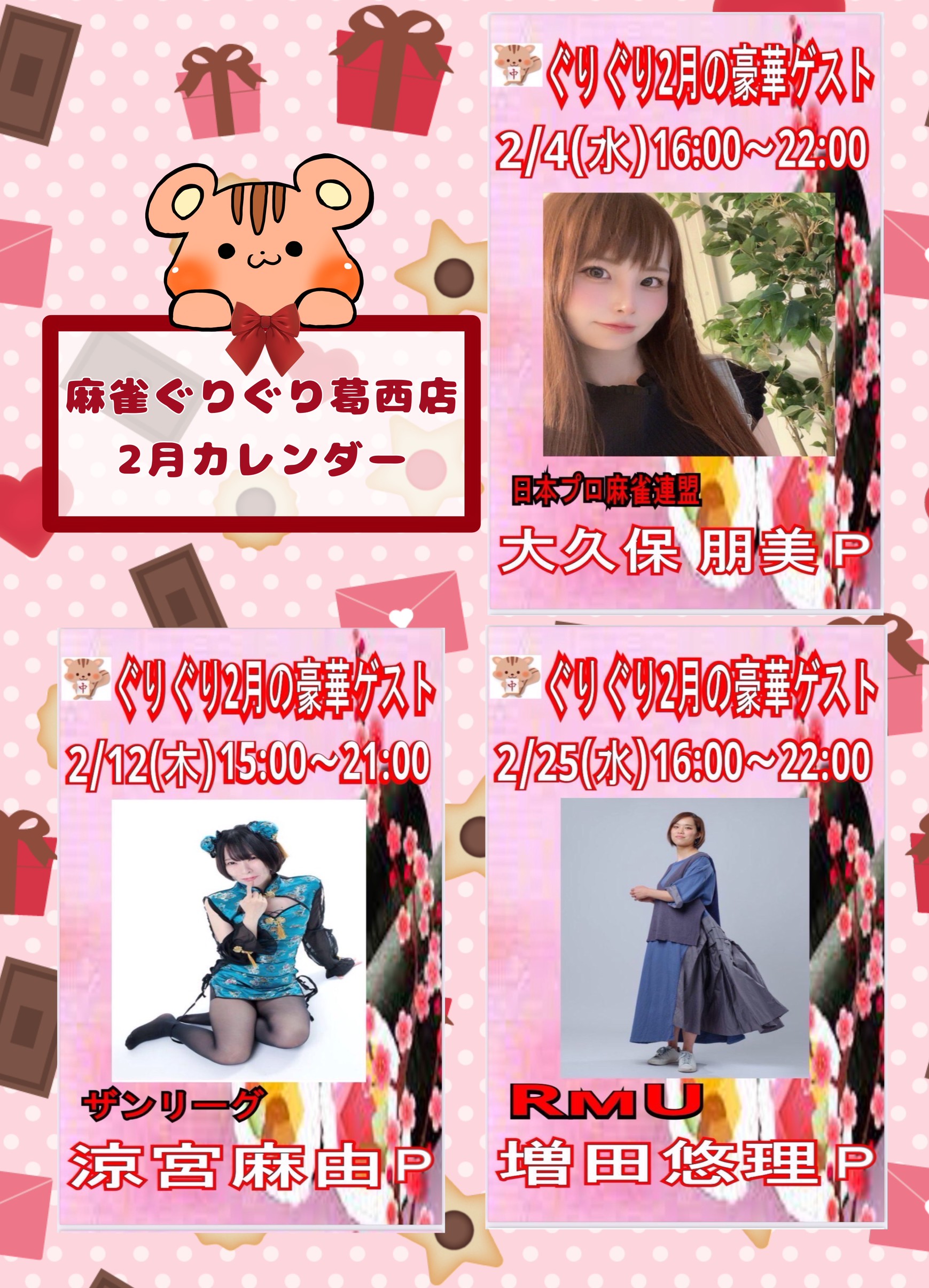 麻雀ぐりぐり 葛西店東京都 マージャングリグリカサイテン 東京都 葛西駅 徒歩1分 四麻、三麻、セット、フリー 電話する03-6808-9292 地図 店舗トップ ルール 写真/動画 イベント 求人 クーポン プロ イチオシ ランキング クチコミ イベント詳細 スポットライトイベント イベント ✨2026年2月のゲスト来店予定✨ 固定イベント 2月も豪華ゲストが来店✨ 2/4(水)日本プロ麻雀連盟 大久保朋美 16時~22時 2/12(木)ザンリーグ 涼宮麻由 15時~21時 2/25(水)RMU 増田悠理 16時~22時 皆様のご来店お待ちしております! イベント 【平日限定】ぐりぐりの朝はお得◎ 固定イベント ぐりぐり葛西店は【平日午前中】の来店がお得◎ なんとアプリに【300pt】貯まります! ぐりぐりで朝活、ポイ活を始めてみては!? さらに読み込む... 次の6件〜2件/全2件の検索 お店のコトを友達に教える Facebook X(旧Twitter) Line Mail お店を評価する 閉店・休業・移転・情報違い報告 クチコミ投稿 報告内容詳細※必須 閉店 休業 移転 情報違い 送信する