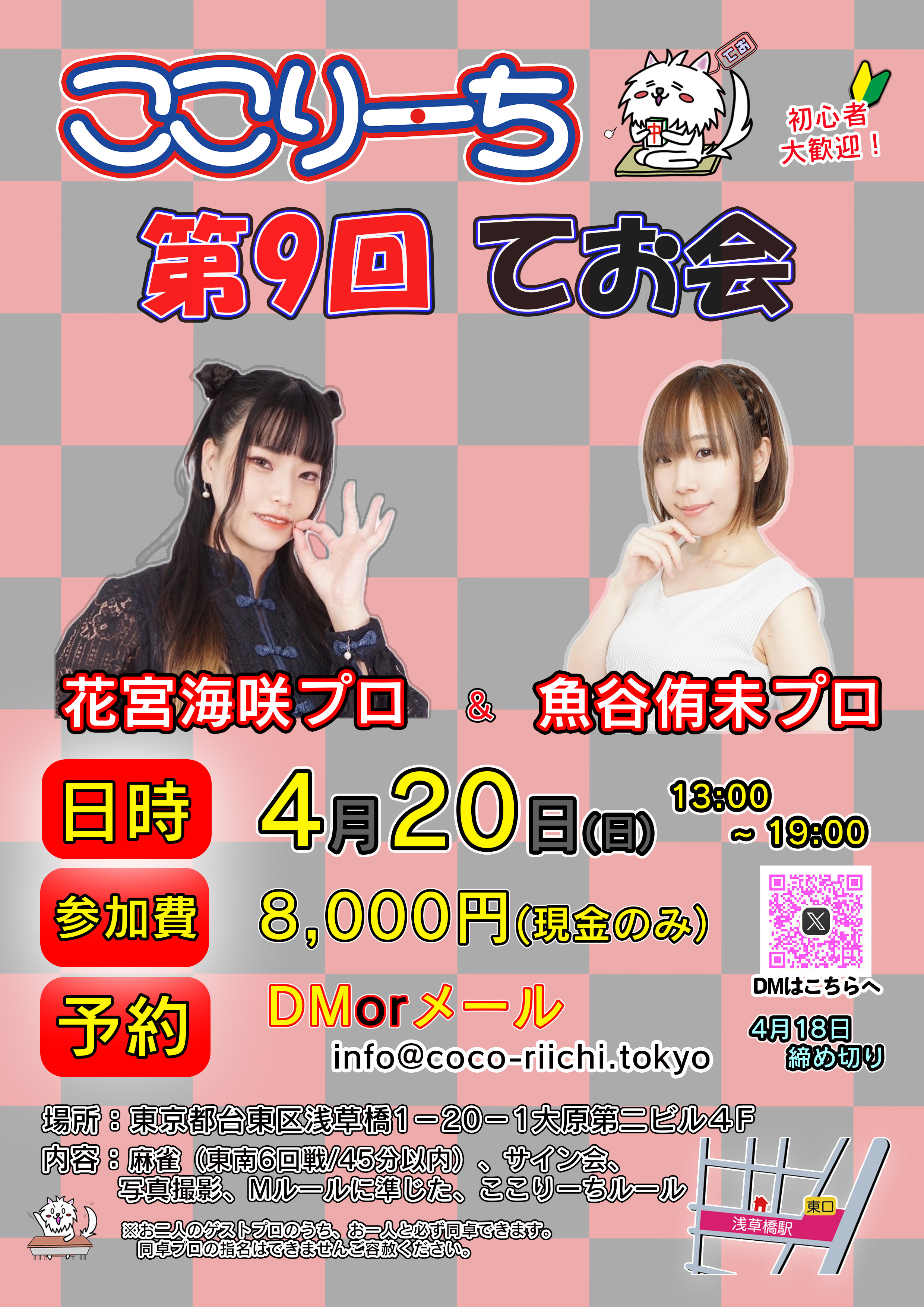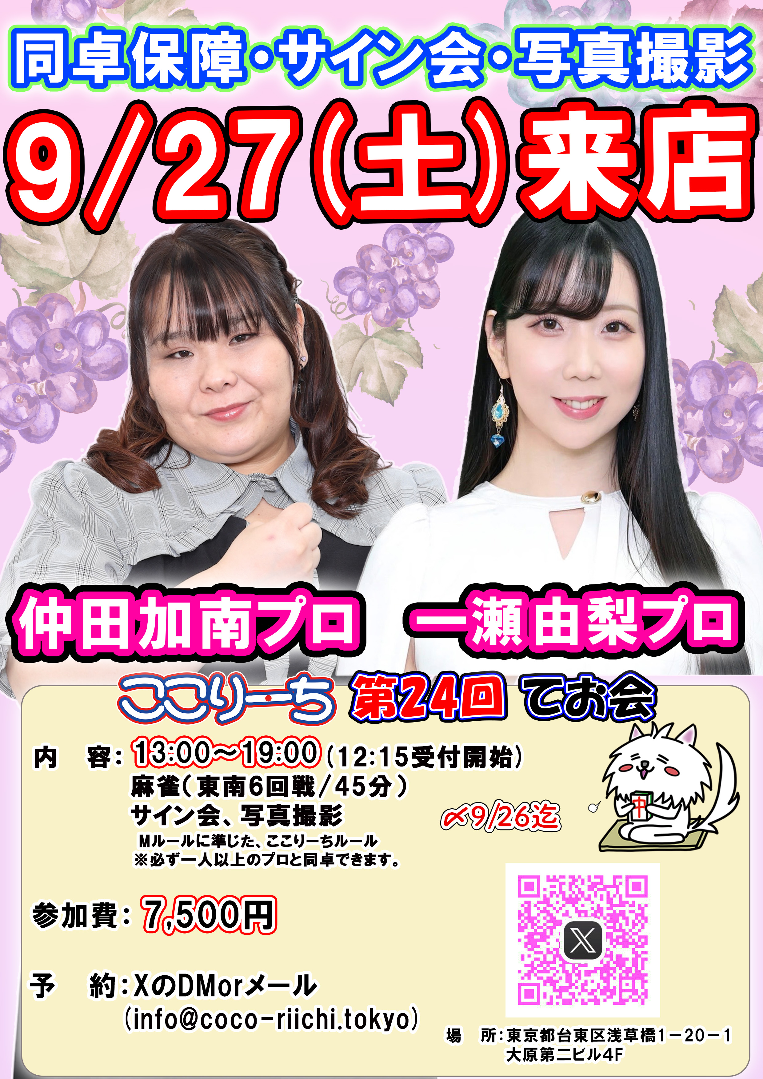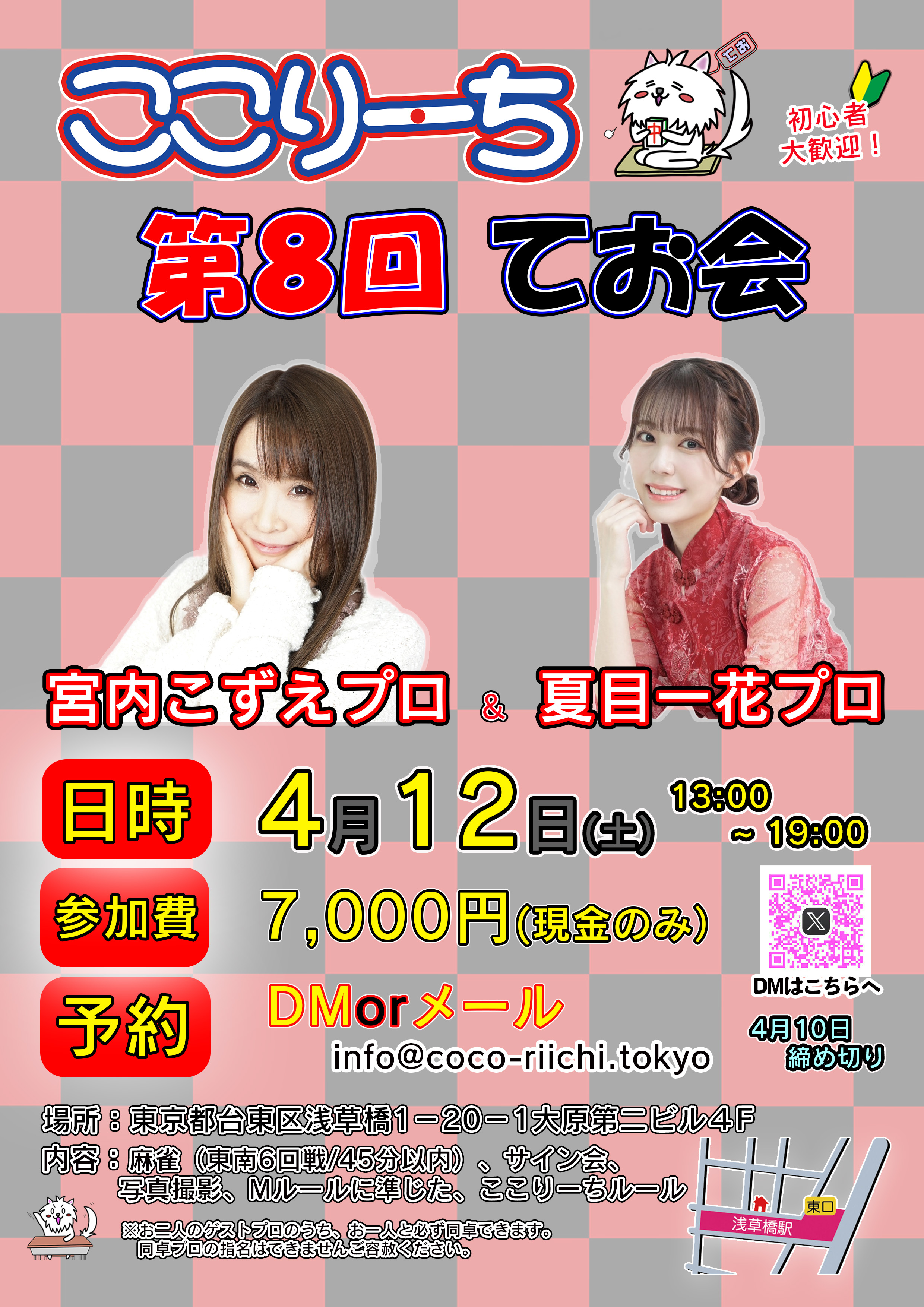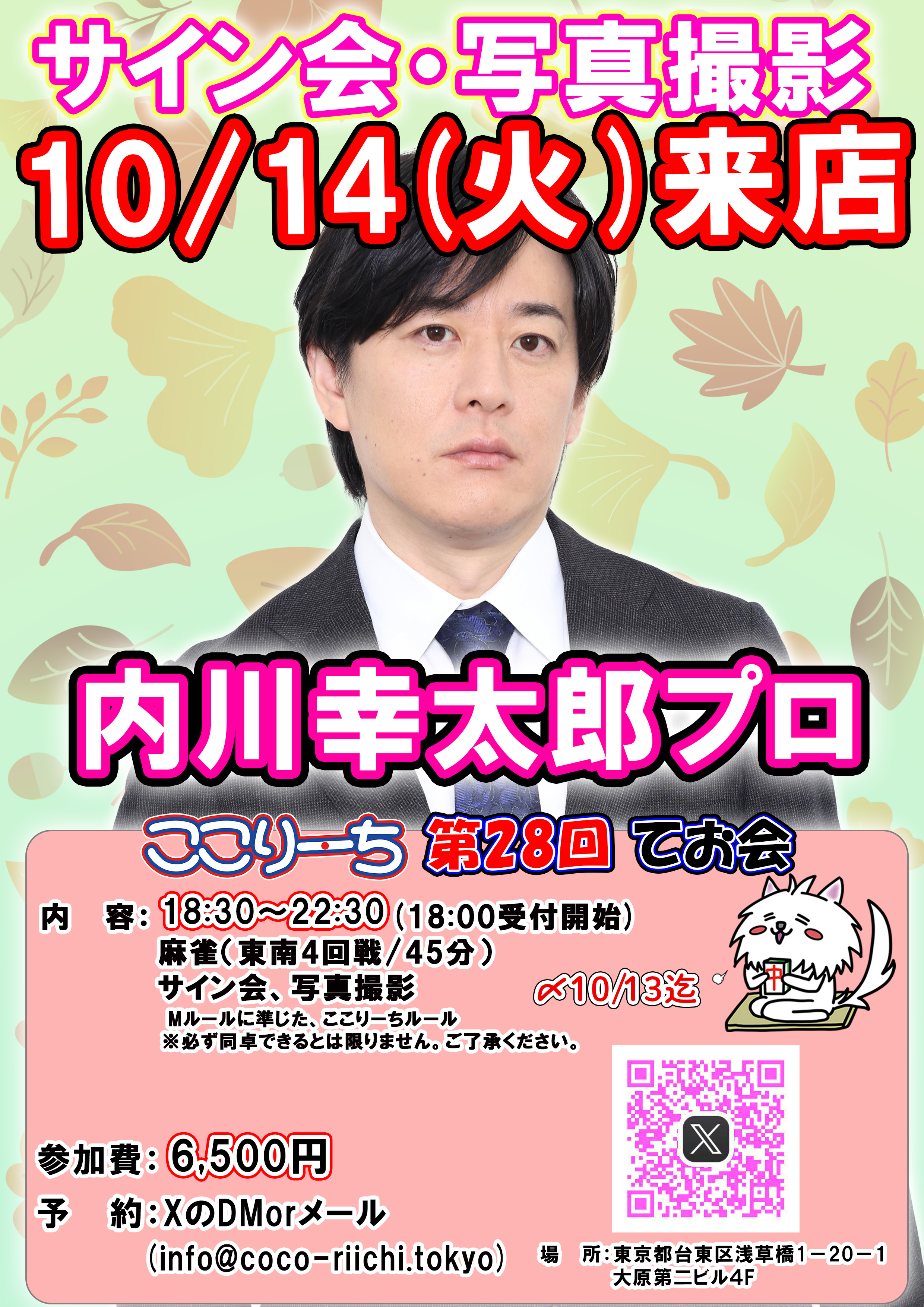 2025.02.01 オープン OPEN麻雀 ここりーち東京都 マージャンココリーチ 東京都 浅草橋駅 徒歩2分 四麻、三麻、ノーレート、セット 電話する03-5829-5419 地図 店舗トップ ルール 写真/動画 イベント 求人 クーポン プロ イチオシ ランキング クチコミ イベント詳細 イベント ✨✨第30回てお会/ゲスト「 新井啓文プロ&浅井裕介プロ」です!✨✨ 日時 : 2025年10月25日(土)~2025年10月25日(土) ⭐第30回てお会を開催いたします⭐ ゲストは「新井啓文プロ&浅井裕介プロ」です! ここりーちのイベントは和気あいあいとした和やかなイベントです! 点数計算できなくて不安な方や、イベント参加が初めてで雰囲気分からない方! ここりーちなら大丈夫👍 初心者🔰に優しいお店です! ご安心してご参加ください😊 ご予約はX(旧Twitter)のここりーちアカウント @cocoriichi2024 へDMでご連絡ください! よろしくお願いいたします! イベント ✨✨第29回てお会/ゲスト「日吉辰哉プロ&さくら 美緒プロ」です!✨✨ 日時 : 2025年10月19日(日)~2025年10月19日(日) ⭐第29回てお会を開催いたします⭐ ゲストは「日吉辰哉プロ&さくら美緒プロ」です! ここりーちのイベントは和気あいあいとした和やかなイベントです! 点数計算できなくて不安な方や、イベント参加が初めてで雰囲気分からない方! ここりーちなら大丈夫👍 初心者🔰に優しいお店です! ご安心してご参加ください😊 ご予約はX(旧Twitter)のここりーちアカウント @cocoriichi2024 へDMでご連絡ください! よろしくお願いいたします! イベント ✨✨第28回てお会/ゲスト「 内川幸太郎プロ」です!✨✨ 日時 : 2025年10月14日(火)~2025年10月14日(火) ⭐第27回てお会を開催いたします⭐ ゲストは「内川幸太郎プロ」です! ここりーちのイベントは和気あいあいとした和やかなイベントです! 点数計算できなくて不安な方や、イベント参加が初めてで雰囲気分からない方! ここりーちなら大丈夫👍 初心者🔰に優しいお店です! ご安心してご参加ください😊 ご予約はX(旧Twitter)のここりーちアカウント @cocoriichi2024 へDMでご連絡ください! よろしくお願いいたします! イベント ✨✨第27回てお会/ゲスト「中川美優プロ&山脇千文美プロ」です!✨✨ 日時 日時 : 2025年10月5日(日)~2025年10月5日(日) ⭐第27回てお会を開催いたします⭐ ゲストは「中川美優プロ&山脇千文美プロ」です! ここりーちのイベントは和気あいあいとした和やかなイベントです! 点数計算できなくて不安な方や、イベント参加が初めてで雰囲気分からない方! ここりーちなら大丈夫👍 初心者🔰に優しいお店です! ご安心してご参加ください😊 ご予約はX(旧Twitter)のここりーちアカウント @cocoriichi2024 へDMでご連絡ください! よろしくお願いいたします! イベント ✨✨第26回てお会/ゲスト「 瀬戸麻衣プロ&押手まりプロ」です!✨✨ 日時 : 2025年10月4日(土)~2025年10月4日(土) ⭐第26回てお会を開催いたします⭐ ゲストは「瀬戸麻衣プロ&押手まりプロ」です! ここりーちのイベントは和気あいあいとした和やかなイベントです! 点数計算できなくて不安な方や、イベント参加が初めてで雰囲気分からない方! ここりーちなら大丈夫👍 初心者🔰に優しいお店です! ご安心してご参加ください😊 ご予約はX(旧Twitter)のここりーちアカウント @cocoriichi2024 へDMでご連絡ください! よろしくお願いいたします! さらに読み込む... 次の6件〜10件/全34件の検索 お店のコトを友達に教える Facebook X(旧Twitter) Line Mail お店を評価する 閉店・休業・移転・情報違い報告 クチコミ投稿 報告内容詳細※必須 閉店 休業 移転 情報違い 送信する