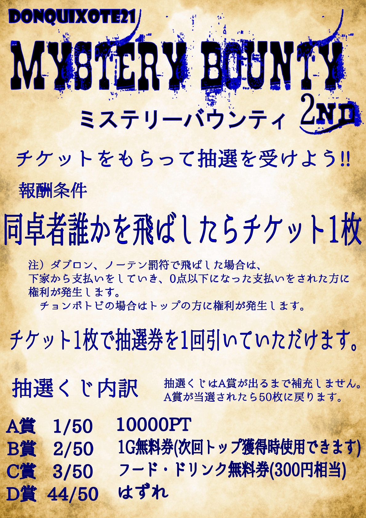 2025.08.01 オープン NEWOPENドンキホーテ21茨城県 ドンキホーテ 茨城県 つくば駅 徒歩10分 四麻、三麻、セット、フリー 電話する029-851-5855 地図 店舗トップ ルール 写真/動画 イベント 求人 クーポン プロ イチオシ ランキング クチコミ イベント詳細 スポットライトイベント イベント 学生フリー半額!!! 固定イベント 学生証のご提示でフリーは全コース料金半額でご案内いたします!!! イベント 2連勝戦 日時 : 2025年12月1日(月)~2025年12月29日(月) 2連勝されたお客様にくじを引いていただきます。 1/10でお店よりポイント進呈!! 単日での上限はありませんので、複数回獲得のチャンスもあります!! イベント ミステリーバウンティ 日時 : 2025年11月1日(土)~2025年11月30日(日) 同卓者を飛ばしたら抽選参加券を進呈いたします。 参加券1枚で確率1/50以下のくじを引くことができます。 見事A賞を引くことができたら豪華賞品GET! さらにA賞が出るまでクジは補充しません!!なので、参加者が増えれば増えるほどチャンス!? イベント 虹祭り!!! 固定イベント 全国でも当店だけ???虹6筒あります!!! 毎月6のつく日限定!!! 詳しくはドンキホーテ21で!!! イベント 3麻ジャックポット 固定イベント オープン立直一発ツモ白ポッチで??? さらに読み込む... 次の6件〜6件/全6件の検索 お店のコトを友達に教える Facebook X(旧Twitter) Line Mail お店を評価する 閉店・休業・移転・情報違い報告 クチコミ投稿 報告内容詳細※必須 閉店 休業 移転 情報違い 送信する