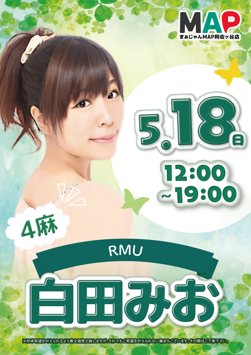 まぁじゃんMAP阿佐ヶ谷店4麻&3麻東京都 マァジャンマップ アサガヤテン 東京都 阿佐ケ谷駅 南口から徒歩29秒! 四麻、フリー、セット、三麻 電話する03-3398-9411 地図 店舗トップ ルール 写真/動画 イベント 求人 クーポン プロ イチオシ ランキング クチコミ イベント詳細 イベント 4人麻雀ご新規様特典! 固定イベント 四麻フリーご新規様大歓迎キャンペーン! 四麻フリーでご来店されたご新規様を対象に、 お得なスタンプカードをプレゼント! 5回目来店時まで、1ゲーム代無料! さらに ステップアップで スタンプカード制覇のお客様には 1ヶ月ゲーム代¥100-引きカード進呈! MAP阿佐ヶ谷店でお得に麻雀を楽しもう! ※注意事項※ このキャンペーンは予告なく終了することがあります イベント 3人麻雀ご新規様特典! 固定イベント M A P 阿佐ヶ谷店では、 初めてご来店して 三麻フリーを ご遊戯して頂いたお客様に!! ご新規様特典で お得なスタンプカードを配布中です♪ ※注意事項※ このキャンペーンは予告なく終了することがあります さらに読み込む... 次の6件〜2件/全2件の検索 お店のコトを友達に教える Facebook X(旧Twitter) Line Mail お店を評価する 閉店・休業・移転・情報違い報告 クチコミ投稿 報告内容詳細※必須 閉店 休業 移転 情報違い 送信する