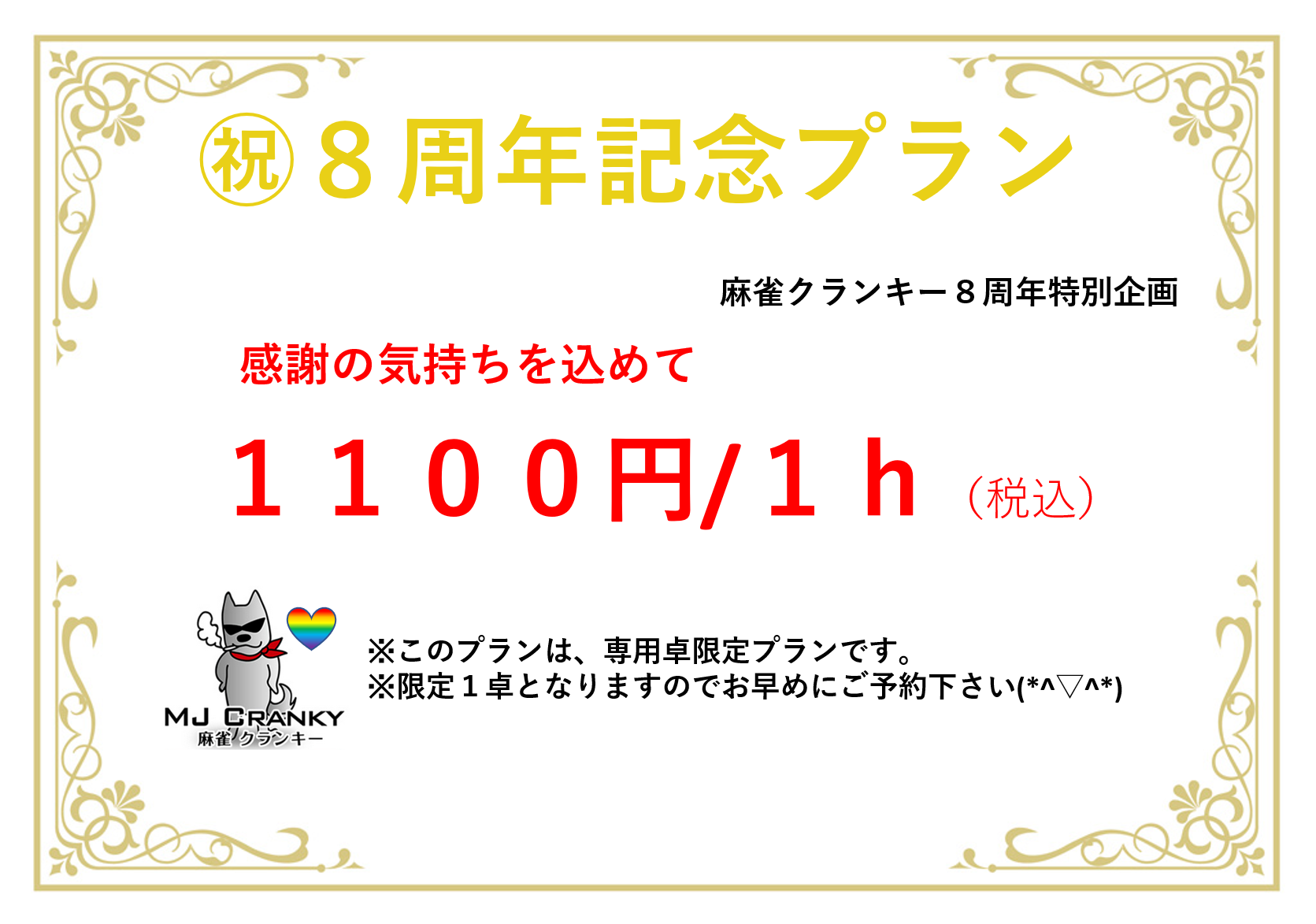 麻雀クランキー 四日市駅前店三重県 マージャンクランキー ヨッカイチエキマエテン 三重県 近鉄四日市駅 徒歩3分 四麻、フリー、セット 電話する059-337-8037 地図 店舗トップ ルール 写真/動画 イベント 求人 クーポン プロ イチオシ ランキング クチコミ イベント詳細 イベント 3DAYパスポートでゲーム代半額!! 固定イベント 3DAYパスポートでゲーム代半額!! 月・火・金・土・日(祝日も含む) の開店~Lastまで打てば打つほどゲーム代がお得になります!! 詳しくはこちらをご覧ください↓ ゲーム代が半額に!?クランキーの最強の料金システム!! イベント お客様無料駐車場のご案内 日時 : 2024年3月1日(金)~2044年3月1日(火) お客様無料駐車場が増大しました‼ 11台まで駐車可能です!! 当店から徒歩2分です!! 詳しくはお問合せ下さい!! TEL:0593378037 イベント 貸卓20%OFFクーポン配布中!! 固定イベント 貸卓をご利用いただいた皆様にプレゼント中!! 次回から使える20%OFFクーポン♬ ※このイベントが終了するまで、繰り返しご利用頂けます!! 個室は10%offになります。 さらに読み込む... 次の6件〜3件/全3件の検索 お店のコトを友達に教える Facebook X(旧Twitter) Line Mail お店を評価する 閉店・休業・移転・情報違い報告 クチコミ投稿 報告内容詳細※必須 閉店 休業 移転 情報違い 送信する