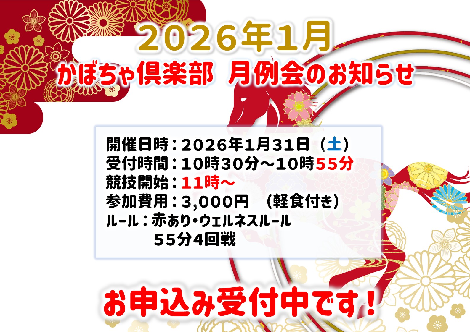 かぼちゃ倶楽部東京都 カボチャクラブ 東京都 両国駅 駅から徒歩1分 セット、健康麻雀、麻雀教室、ノーレート 電話する03-5608-5066 地図 店舗トップ ルール 写真/動画 イベント 求人 クーポン プロ イチオシ ランキング クチコミ イベント詳細 スポットライトイベント イベント かぼちゃ倶楽部1月度月例会開催! 固定イベント 1/31(土)10時30分受付開始、11時スタート。 参加費3,000円軽食付き。ウェルネスマージャンルール、半荘4回戦。 初心者の方や、まだ来店されたことのない方の参加も大歓迎です! さらに読み込む... 次の6件〜1件/全1件の検索 お店のコトを友達に教える Facebook X(旧Twitter) Line Mail お店を評価する 閉店・休業・移転・情報違い報告 クチコミ投稿 報告内容詳細※必須 閉店 休業 移転 情報違い 送信する