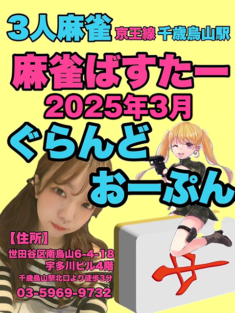 2025.03.09 オープン OPEN麻雀 バスター東京都 マージャンバスター 東京都 千歳烏山駅 西口徒歩3分 三麻、セット、フリー 電話する03-5969-9732 地図 店舗トップ ルール 写真/動画 イベント 求人 クーポン プロ イチオシ ランキング クチコミ 写真一覧 動画一覧 お店のコトを友達に教える Facebook X(旧Twitter) Line Mail お店を評価する 閉店・休業・移転・情報違い報告 クチコミ投稿 報告内容詳細※必須 閉店 休業 移転 情報違い 送信する