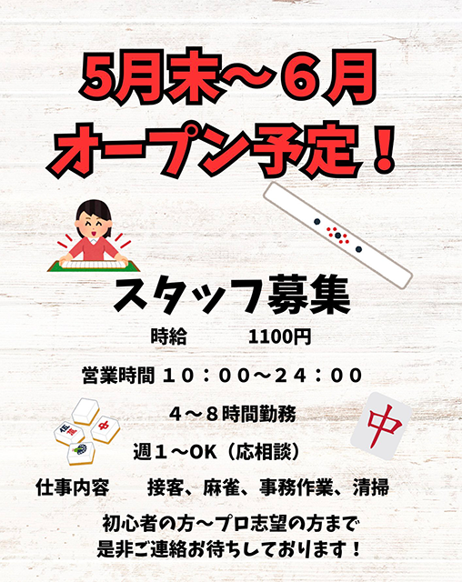 2025.05.27 オープン OPEN麻雀🌸VILLAGE わんちゃんす北海道 マージャンヴィレッジ ワンチャンス 北海道 北24条駅 徒歩1分 四麻、ノーレート、麻雀教室、セット、フリー 電話する011-600-0752 地図 店舗トップ ルール 写真/動画 イベント 求人 クーポン プロ イチオシ ランキング クチコミ 写真一覧 動画一覧 お店のコトを友達に教える Facebook X(旧Twitter) Line Mail お店を評価する 閉店・休業・移転・情報違い報告 クチコミ投稿 報告内容詳細※必須 閉店 休業 移転 情報違い 送信する