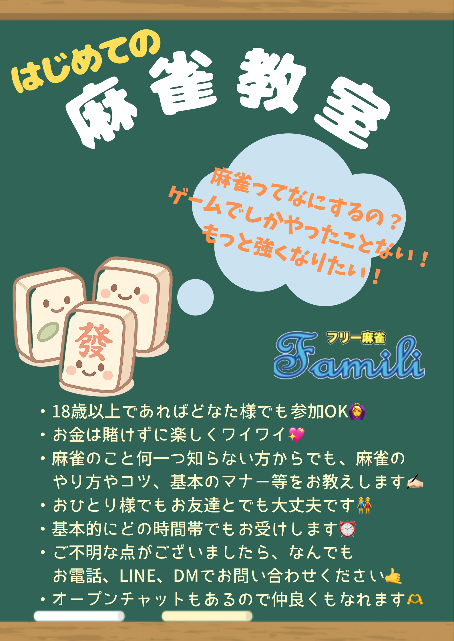 フリー麻雀 ファミリ広島県 フリーマージャン ファミリ 広島県 銀山町駅 徒歩5分 セット、麻雀教室、三麻、フリー 電話する082-542-0731 地図 店舗トップ ルール 写真/動画 イベント 求人 クーポン プロ イチオシ ランキング クチコミ 写真一覧 動画一覧 お店のコトを友達に教える Facebook X(旧Twitter) Line Mail お店を評価する 閉店・休業・移転・情報違い報告 クチコミ投稿 報告内容詳細※必須 閉店 休業 移転 情報違い 送信する
