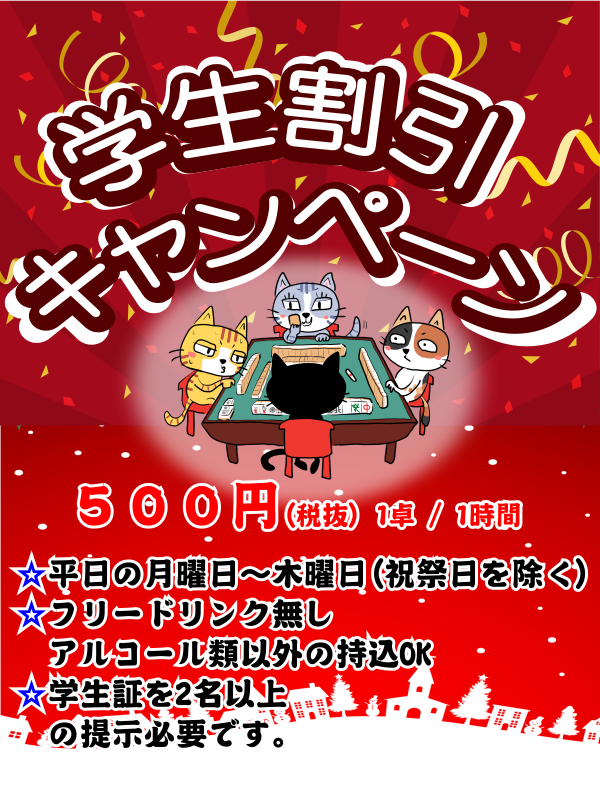麻雀 JAM(ジャム) 梅田店大阪府 マージャン ジャム ウメダテン 大阪府 梅田駅 徒歩4分 セット、フリー 電話する06-6362-5511 地図 店舗トップ ルール 写真/動画 イベント 求人 クーポン プロ イチオシ ランキング クチコミ イチオシ詳細 スポットライトイチオシ イチオシ 1 学生割引キャンペーン 500円(税抜) 1卓 / 1時間 ※平日の月曜~木曜(祝祭日を除く) ※フリードリンク無し アルコール類以外の持込OK! ※学生証を2名以上の提示が必要です。 イチオシ 2 ゲーム代値下げ‼ 【四人打ち】 ゲーム代400円⇒350円 値下げいたしました♡ 気軽に楽しんでください。 お店のコトを友達に教える Facebook X(旧Twitter) Line Mail お店を評価する 閉店・休業・移転・情報違い報告 クチコミ投稿 報告内容詳細※必須 閉店 休業 移転 情報違い 送信する