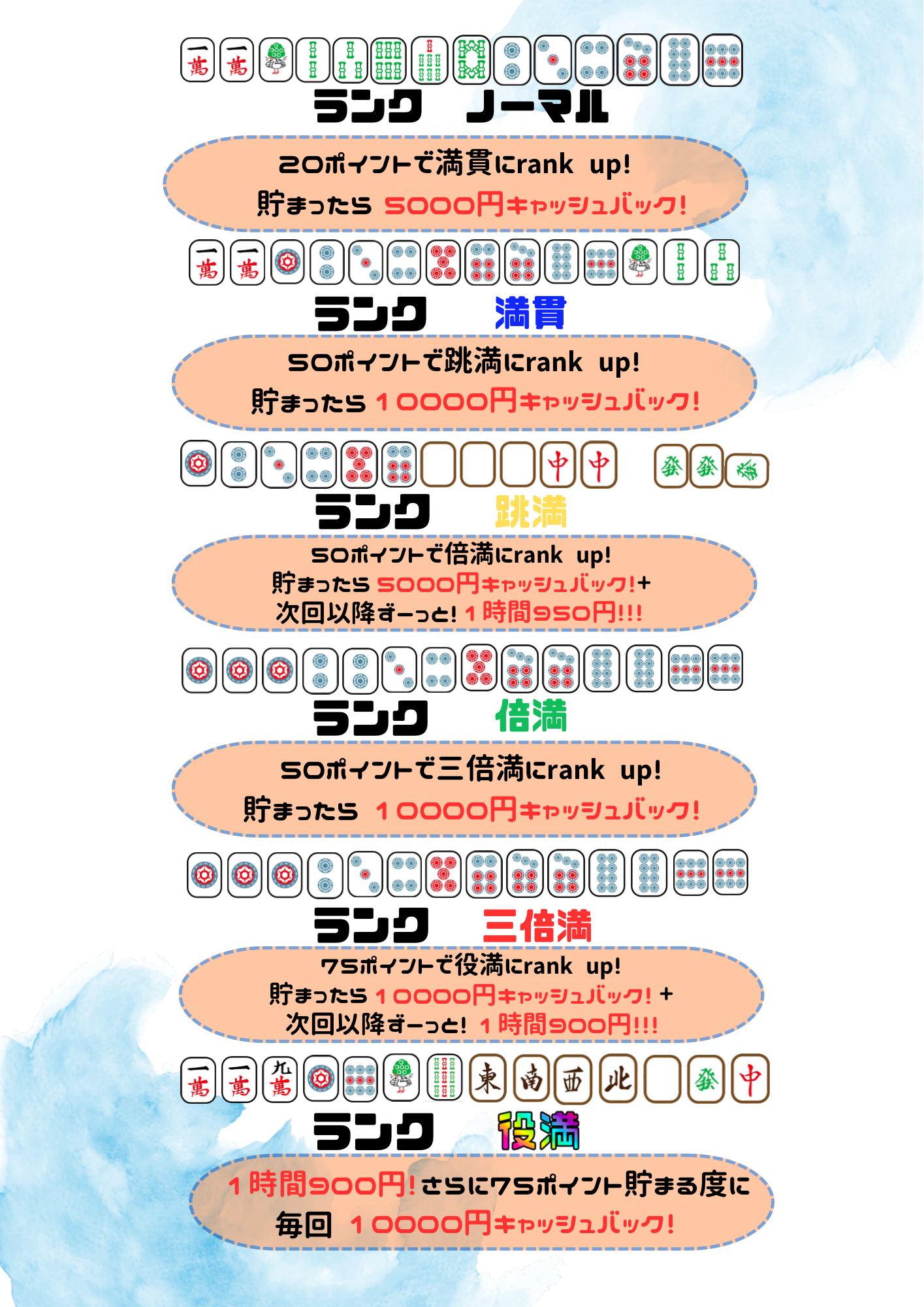 フリー麻雀 ファミリ広島県 フリーマージャン ファミリ 広島県 銀山町駅 徒歩5分 セット、麻雀教室、三麻、フリー 電話する082-542-0731 地図 店舗トップ ルール 写真/動画 イベント 求人 クーポン プロ イチオシ ランキング クチコミ イチオシ詳細 イチオシ 1 ★フリー、セット共に駐車場無料サービス★ 当店指定駐車場は、フリーのお客様一切無料、セットのお客様一台無料(平日フリータイム適用外)、二台目以降一台につき1時間100円でご利用いただけます。 イチオシ 2 ★遊び方が色々選べる★ 広島初!!フリーのルールが気分で選べる! 関東ルールと広島ルールの2つがあります♪ セット様のとってもお得なポイントカード!貯めれば貯めるほどお得に♪ 広島一破格の麻雀教室★わいわい楽しくノーレートも♪オープンチャットあります! イチオシ 3 ★平日フリータイム★ 平日AM9:00~PM5:00までフリータイム 一台4000円!!! 持ち込み自由 +1000円でソフトドリンク飲み放題 1時間100円で駐車場の利用可 お店のコトを友達に教える Facebook X(旧Twitter) Line Mail お店を評価する 閉店・休業・移転・情報違い報告 クチコミ投稿 報告内容詳細※必須 閉店 休業 移転 情報違い 送信する