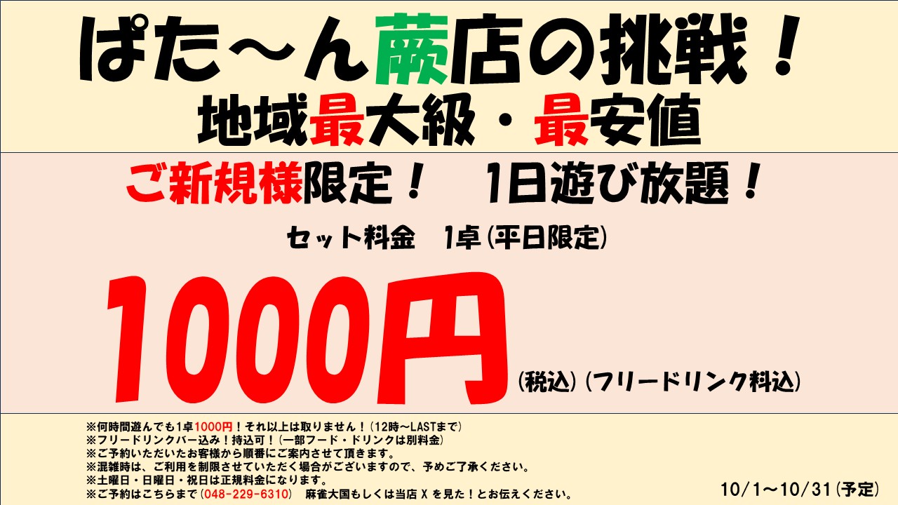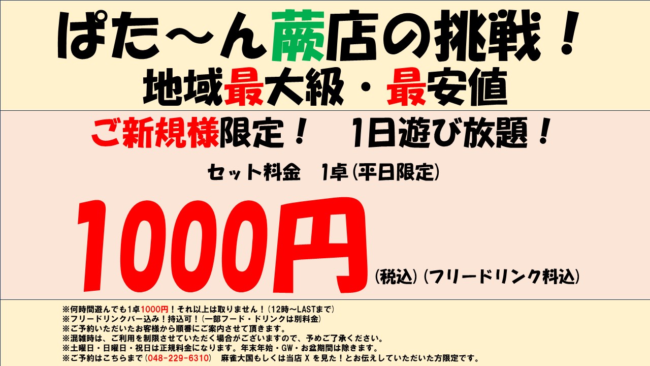 まぁじゃん ぱたーん 蕨店埼玉県 マァジャン パターン ワラビテン 埼玉県 蕨駅 徒歩1分 四麻、三麻、セット、フリー 電話する048-229-6310 地図 店舗トップ ルール 写真/動画 イベント 求人 クーポン プロ イチオシ ランキング クチコミ 総合 まぁじゃん ぱたーん 蕨店 3.0 5 1 ? 点数について 1件 詳細 雀荘クチコミの点数概要 クチコミの点数は、総合点数を中心に、全部で11項目あります。 12項目は「雀荘の営業形態についての項目」と「その他の環境についての項目」の2つにわかれます。 総合スコア (計11項目) 営業形態点数 (6項目) 雀荘の営業形態についての点数 フリー セット 健康麻雀 麻雀教室 ノーレート 三麻 その他の環境点数 (5項目) 雀荘の設備、その他の環境についての点数 設備 接客 居心地 CP(コストパフォーマンス)・清潔感 ※麻雀王国雀荘検索のクチコミの点数は、当社独自の基準に基づく評価であり、雀荘の価値を何ら保証するものではあ りません。あくまでの一つの参考としてご活用ください。 雀荘クチコミ点数の算出方法要 クチコミの点数は、「ユーザー評価」に独自のアルゴリズムで掛け合わせて算出しております。 麻雀王国では、日々信頼性の高い点数を追及し、微調整を行っております。 ユーザー評価 個人が付けた点数 (雰囲気、感性、感覚、状況、主観など) フリー3.0 セット3.0 健康麻雀- 麻雀教室- ノーレート- 三麻- 設備 3.0 | 接客 3.0 | 居心地 3.0 | CP(コストパフォーマンス) 3.0 | 清潔感 3.0 フリー ¥600/般 セット ¥300/般 ¥300/学 ぱたーんグループ 長期契約安心店舗 全国* 埼玉県41位 ★★ご予約必須★★ ご新規様・平日限定 セット1卓、終日1000円! 最最最安値でご案内! 2022年4月 蕨駅東口徒歩1分にNewOpen!! オーソドックスな四人麻雀と、三人麻雀を取り扱ってます! 地域最大級の14卓! 店内はとても広い為、快適な空間をご提供できます! 女性のゲーム代は300円! 毎月、とてもお得なイベントも行っております! セットは地域最安値の1H1200円!(平日、通常料金) セット利用でポイント贈呈!お得なサービス券配布します! 続きを見る 閉じる お店のイチオシポイント イチオシ 1 平日セット1日1000円! ご新規様・平日限定 終日利用1000円(税・ドリンク込) 何時間遊んでも1000円!(ラストまで) 早い者勝ち!ご連絡お待ちしております♪ お店のコトを友達に教える Facebook X(旧Twitter) Line Mail お店を評価する 閉店・休業・移転・情報違い報告 クチコミ投稿 報告内容詳細※必須 閉店 休業 移転 情報違い 送信する 「ネット予約」&「チェックイン」で 来店人数×100Gもらえる! ログイン ご予約情報入力 来店日※ 2013年12月31日(火) 卓数※ 12345678910卓 予定開始※ 1:00 2:00 3:00 4:00 5:00 6:00 7:00 8:00 9:00 10:00 11:00 12:00 13:00 14:00 15:00 16:00 17:00 18:00 19:00 20:00 21:00 22:00 23:00 24:00 予定終了※ 1:00 2:00 3:00 4:00 5:00 6:00 7:00 8:00 9:00 10:00 11:00 12:00 13:00 14:00 15:00 16:00 17:00 18:00 19:00 20:00 21:00 22:00 23:00 24:00 お名前※ 携帯TEL※ メール※ ルール※ 四麻 三麻 点数※ 25000点 30000点 赤枚数※ 赤5マン01234 赤5ピン01234 赤5ソー01234 その他 チップ 焼鳥 備考 予約する クチコミ 投稿する まぁじゃん ぱたーん 蕨店 埼玉県 蕨駅 蕨唯一の4麻フリーのお店。店内もトイレもキレイ。遅番の接客かなり良かったです。 2022/04/28 (2022/04訪問) ゲスト さんのクチコミ 総合 4.0 お店独自のHP・ソーシャル X (旧twitter) 自社HP お店の情報詳細 店名 まぁじゃん ぱたーん 蕨店 住所 〒335-0002 [地図] 埼玉県蕨市塚越1-2-5 パールプラザビル3F 電話 048-229-6310 交通手段 JR京浜東北線 蕨駅 徒歩1分 営業時間 オープン~ラスト 定休日 年中無休 営業内容 四麻、三麻、セット、フリー ゲーム代(フリー) ¥600/般 [東南戦/1回] ¥400/般 [三人麻雀/1回] ゲーム代(セット) ¥300/般 ¥300/学 [☆☆ご予約必須☆☆ ご新規様・平日限定 終日1000円!(ラストまで)] ゲーム代(健康麻雀) ゲーム代(麻雀教室) その他の料金 ※土日祝日は1H1500円。 ※ドリンクバーは別途1卓500円。 オープン日 2022年4月10日 初投稿者 ゲスト お店のサービス・システム・設備 総卓数 14卓 卓種 全自動配牌卓×14 その他 [最新 REXXⅢ導入] サービス 女性割、学割、女性スタッフ、自動配牌卓、フリードリンク システム・設備 備考 関連エリア・路線 埼玉県の雀荘ランキング 蕨駅の雀荘ランキング 埼玉県の雀荘特集 埼玉県蕨市の雀荘特集 蕨駅の雀荘特集 お店を利用する 電話する048-229-6310 地図埼玉県蕨市塚越1-2-5パールプラザビル3F 店舗トップ ルール 写真/動画 イベント 求人 クーポン プロ イチオシ ランキング ソーシャル [ 管理者ページ ]