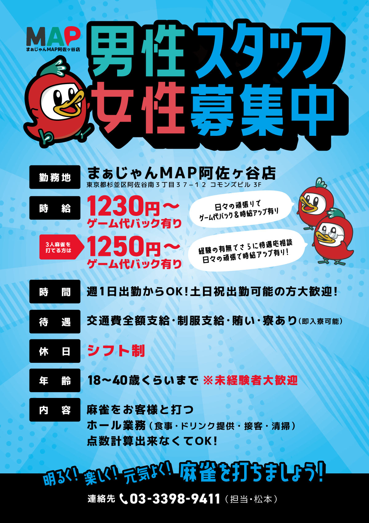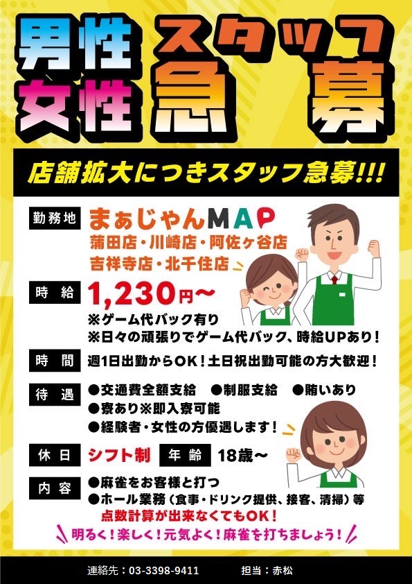 女性 1,100円/h 土日祝1,760円