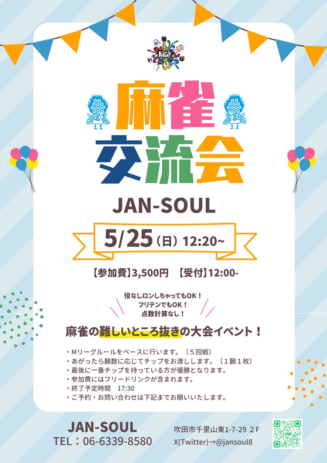 10:00~17:00 初心者麻雀教室&自由対局 3000円