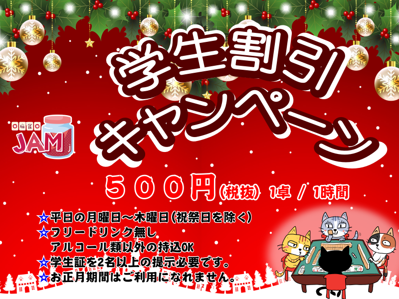 土日祝祭日 1,540円(税込) 1時間 / 1卓]
