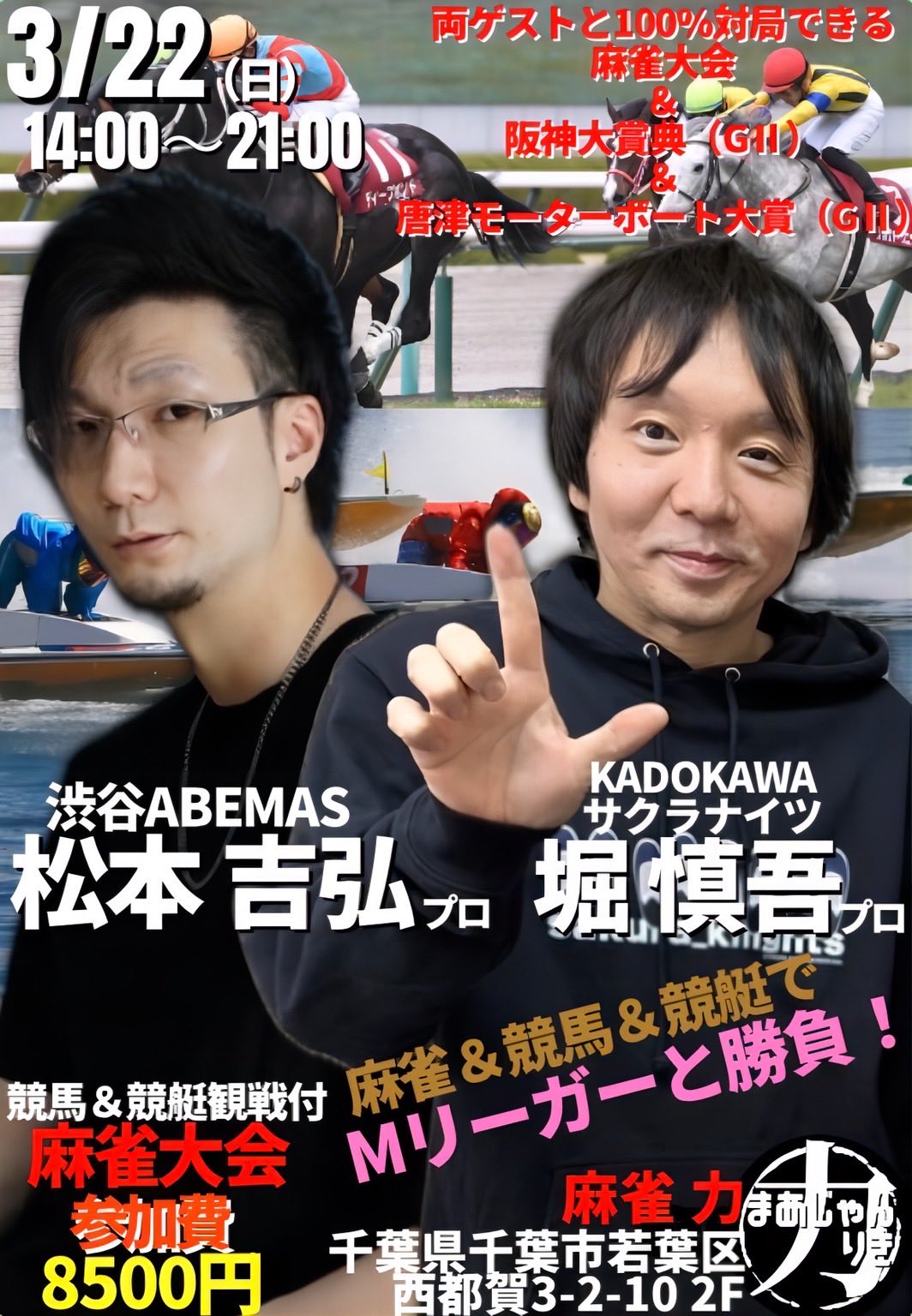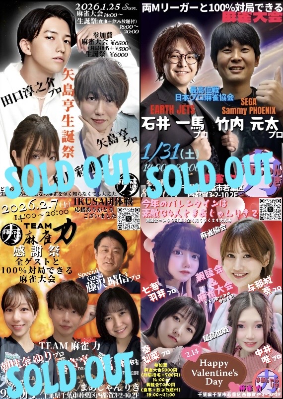 麻雀 力(りき)千葉県 マージャン リキ 千葉県 都賀駅 西口から徒歩30秒 ノーレート、フリー、セット、麻雀教室 電話する043-287-9944 地図 店舗トップ ルール 写真/動画 イベント 求人 クーポン プロ イチオシ ランキング クチコミ 総合 麻雀 力(りき) 3.0 5 21 ? 点数について 21件 詳細 雀荘クチコミの点数概要 クチコミの点数は、総合点数を中心に、全部で11項目あります。 12項目は「雀荘の営業形態についての項目」と「その他の環境についての項目」の2つにわかれます。 総合スコア (計11項目) 営業形態点数 (6項目) 雀荘の営業形態についての点数 フリー セット 健康麻雀 麻雀教室 ノーレート 三麻 その他の環境点数 (5項目) 雀荘の設備、その他の環境についての点数 設備 接客 居心地 CP(コストパフォーマンス)・清潔感 ※麻雀王国雀荘検索のクチコミの点数は、当社独自の基準に基づく評価であり、雀荘の価値を何ら保証するものではあ りません。あくまでの一つの参考としてご活用ください。 雀荘クチコミ点数の算出方法要 クチコミの点数は、「ユーザー評価」に独自のアルゴリズムで掛け合わせて算出しております。 麻雀王国では、日々信頼性の高い点数を追及し、微調整を行っております。 ユーザー評価 個人が付けた点数 (雰囲気、感性、感覚、状況、主観など) フリー3.0 セット3.0 健康麻雀3.0 麻雀教室3.0 ノーレート3.0 三麻3.0 設備 3.0 | 接客 3.0 | 居心地 3.0 | CP(コストパフォーマンス) 3.0 | 清潔感 3.0 フリー ¥400/般 セット ¥250/般 ¥200/学 長期契約安心店舗 全国67位 千葉県3位 【千葉県千葉市若葉区・都賀駅】麻雀 力(りき)は、ノーレート・フリー・セット・麻雀教室が楽しめる雀荘です。 ☆2023年7/1 リニューアルオープン☆ Mリーグルールノーレートフリー専門店に生まれ変わりました。 JR都賀駅西口から徒歩30秒の駅チカ雀荘です!! ぜひ麻雀力へお越しください♪♪ 当店は「お客様に気持ち良く過ごして頂ける麻雀店」をモットーに日々努力しております。 女性のお客様、お一人様もノーレートフリーなので、お気軽にご来店ください。 毎週土曜日にMリーガーなどの有名プロと100%対局出来る麻雀大会も開催しております。 ぜひご参加ください♪♪ 続きを見る 閉じる お店のイチオシポイント イチオシ 1 Mリーガーと100%対局できる麻雀大会開催中! 毎週開催している 有名プロと100%対局できる麻雀大会。 日吉辰哉 プロ 東城りお プロ 二階堂亜樹 プロ 二階堂瑠美 プロ 多井隆晴 プロ 松ヶ瀬隆弥 プロ 佐々木寿人 プロ 萩原聖人 プロ 渋川難波 プロ 土田浩翔 プロ 黒沢咲 プロ 勝又健志 プロ 松本吉弘 プロ 日向藍子 プロ 猿川真寿 プロ 渡辺太 プロ 襟川麻衣子 プロ 村上淳 プロ 丸山奏子 プロ 藤崎智 プロ 松嶋桃 プロ 本田朋広 プロ 瀬戸熊直樹 プロ 醍醐大 プロ 石橋伸洋 プロ 和久津晶 プロ 沢崎誠 プロ 小林剛 プロ 茅森早香 プロ 鈴木大介 プロ 堀慎吾 プロ 園田賢 プロ 浅井堂岐 プロ 鈴木優 プロ 仲林圭 プロ 滝沢和典 プロ 魚谷侑未 プロ 鈴木たろう プロ 浅見真紀 プロ 菅原千瑛 プロ 内川幸太郎 プロ 朝倉康心 プロ 河野直也 プロ 白鳥翔 プロ 瑞原明奈 プロ 前原雄大プロ 古橋崇志 プロ 小林未沙 さん HIRO柴田プロ 藤沢晴信 プロ 竹内元太 プロ 下石戟プロ 逢川恵夢プロ 高宮まりプロ 阿久津翔太プロ 三浦智博プロ 木下遥プロ 川上レイ プロ 梶梨沙子プロ 来店済み。 今後もMリーグ関係プロ 続々来店予定です。 イチオシ 2 Mリーグルールノーレートフリー専門店に生まれ変わりました。 2023年7月1日より、当店は Mリーグルールノーレートフリー専門店に生まれ変わりました。 イチオシ 3 IKUSA団体戦に「TEAM麻雀 力」参戦中! 麻雀 力は、IKUSA団体戦に参戦中! 「TEAM麻雀 力」は、「協会のグランドスラム(雀王戦・雀竜位戦・日本オープン優勝)」達成の矢島亨プロ、シンデレラファイト、桜蕾戦優勝の鴨舞プロ、WRCリーグ・桜蕾戦優勝の朝比奈ゆりプロとタイトルホルダー揃い。応援宜しくお願い致します。 お店のコトを友達に教える Facebook X(旧Twitter) Line Mail お店を評価する 閉店・休業・移転・情報違い報告 クチコミ投稿 報告内容詳細※必須 閉店 休業 移転 情報違い 送信する 最新情報 2026年1月24日(土) イベント ほりぽよ&まつもってぃと100%対局できる麻雀大会🀄️ KADOKAWAサクラナイツ 所属 堀慎吾 プロ & 渋谷ABEMAS 所属 松本吉弘 プロ がご来店! 阪神大賞典と唐津モーターボート大賞の観戦付き🐎🚤 お二人と必ず同卓できます。 こちらのイベントは完売となっております。 「ネット予約」&「チェックイン」で 来店人数×100Gもらえる! ログイン ご予約情報入力 来店日※ 2013年12月31日(火) 卓数※ 12345678910卓 予定開始※ 1:00 2:00 3:00 4:00 5:00 6:00 7:00 8:00 9:00 10:00 11:00 12:00 13:00 14:00 15:00 16:00 17:00 18:00 19:00 20:00 21:00 22:00 23:00 24:00 予定終了※ 1:00 2:00 3:00 4:00 5:00 6:00 7:00 8:00 9:00 10:00 11:00 12:00 13:00 14:00 15:00 16:00 17:00 18:00 19:00 20:00 21:00 22:00 23:00 24:00 お名前※ 携帯TEL※ メール※ ルール※ 四麻 三麻 点数※ 25000点 30000点 赤枚数※ 赤5マン01234 赤5ピン01234 赤5