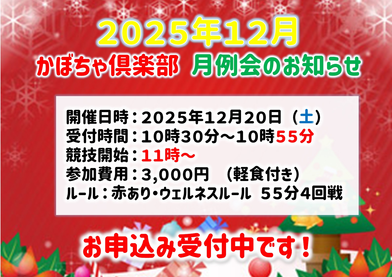 かぼちゃ倶楽部東京都 カボチャクラブ 東京都 両国駅 駅から徒歩1分 セット、健康麻雀、麻雀教室、ノーレート 電話する03-5608-5066 地図 店舗トップ ルール 写真/動画 イベント 求人 クーポン プロ イチオシ ランキング クチコミ 総合 かぼちゃ倶楽部 3.0 5 2 ? 点数について 2件 詳細 雀荘クチコミの点数概要 クチコミの点数は、総合点数を中心に、全部で11項目あります。 12項目は「雀荘の営業形態についての項目」と「その他の環境についての項目」の2つにわかれます。 総合スコア (計11項目) 営業形態点数 (6項目) 雀荘の営業形態についての点数 フリー セット 健康麻雀 麻雀教室 ノーレート 三麻 その他の環境点数 (5項目) 雀荘の設備、その他の環境についての点数 設備 接客 居心地 CP(コストパフォーマンス)・清潔感 ※麻雀王国雀荘検索のクチコミの点数は、当社独自の基準に基づく評価であり、雀荘の価値を何ら保証するものではあ りません。あくまでの一つの参考としてご活用ください。 雀荘クチコミ点数の算出方法要 クチコミの点数は、「ユーザー評価」に独自のアルゴリズムで掛け合わせて算出しております。 麻雀王国では、日々信頼性の高い点数を追及し、微調整を行っております。 ユーザー評価 個人が付けた点数 (雰囲気、感性、感覚、状況、主観など) フリー3.0 セット- 健康麻雀3.0 麻雀教室3.0 ノーレート3.0 三麻- 設備 3.0 | 接客 3.0 | 居心地 3.0 | CP(コストパフォーマンス) 3.0 | 清潔感 3.0 セット ¥300/般 ¥250/学 長期契約安心店舗 全国* 東京都* ◆◇◆◇◆◇◆◇◆◇◆◇◆◇◆◇◆◇◆◇◆◇◆◇◆◇◆◇◆◇◆◇◆◇◆◇ お盆休み期間中も変わらぬセット料金! 1時間1卓1,200円でご利用可能です!(土日・祝日は1卓1日10,000円) ご予約はお早めにどうぞ! ※自動配牌卓ではありません。予めご了承ください。 ◆◇◆◇◆◇◆◇◆◇◆◇◆◇◆◇◆◇◆◇◆◇◆◇◆◇◆◇◆◇◆◇◆◇◆◇ 20代~80代、初心者~上級者まで様々の方にご利用いただいております! 明るく楽しく和やかに! お好きなお時間に来店し、お好きな時間にお帰りいただけます♪ JR両国駅から徒歩1分! 在籍スタッフのほとんどが麻雀プロ! ドリンク100円で飲み放題! 広々スペース!持ち込み可 是非お待ちしております!!!!! 【経験者コース】10時~19時(毎日開催) *10時~19時(2,400円)※月~金曜日は200円割引 *10時~15時(1,900円) *14時~19時(1,900円) ドリンク飲み放題 (+100円) 【個人レッスン】1時間1,500円(事前予約制) ※人数に応じて割引あり ◆かぼちゃ倶楽部ではお客様のマスク着用につきましては「推奨」とさせていただきます。 初心者の方大歓迎です! 久しぶりのマージャンでもすぐに楽しめる・・・ それが、健康マージャン教室のウェルネスマージャンルールです。 マージャンのルールを良い部分は残し、複雑な部分は簡略化して 誰にでも楽しみやすく、親しみやすいようにしたマージャンをお楽しみいただけます♪ 続きを見る 閉じる お店のイチオシポイント イチオシ 1 も・ち・ろ・ん!賭けない・飲まない・吸わない♪ 当店は賭けない、飲まない、吸わないを前提としたマージャン教室・健康マージャンのお店です。 健康マージャンには ①健康づくり・仲間づくり・生きがいづくり ②認知症予防対策 ③ねんりんピック(厚生労働省主催) などなどの魅力がございます。 また当店はマージャンのルールを良い部分はのこし、複雑な部分は簡略化したウェルネスマージャンルールを採用しております。 誰にでも楽しみやすく、親しみやすいマージャンをぜひ一度お試しください♪♪ イチオシ 2 お好きなコースをお選びいただけます 2025年1月より新料金体系がスタート! 1日遊んでも¥2,400です! 【経験者コース】 *10時~19時(2,400円)月~金200円割引 *10時~15時(1,900円) *14時~19時(1,900円) ドリンク飲み放題 (+100円) 【教室コース】 1時間1,500円(事前予約制) ※人数に応じて割引あり イチオシ 3 両国駅から徒歩1分 当店はJR総武線 両国駅より徒歩1分の好立地で営業をしております。お近くにお住まいの方も遠方の方もぜひ一度お越しください!! お店のコトを友達に教える Facebook X(旧Twitter) Line Mail お店を評価する 閉店・休業・移転・情報違い報告 クチコミ投稿 報告内容詳細※必須 閉店 休業 移転 情報違い 送信する 最新情報 2025年11月29日(土) イベント かぼちゃ倶楽部12月度月例会開催! 12/20(土)10時30分受付開始、11時スタート。 ※普段より1週早い開催となります。ご注意ください。 参加費3,000円軽食付き。ウェルネスマージャンルール、半荘4回戦。 初心者の方や、まだ来店されたことのない方の参加も大歓迎です! 「ネット予約」&「チェックイン」で 来店人数×100Gもらえる! ログイン ご予約情報入力 来店日※ 2013年12月31日(火) 卓数※ 12345678910卓 予定開始※ 1:00 2:00 3:00 4:00 5:00 6:00 7:00 8:00 9:00 10:00 11:00 12:00 13:00 14:00 15:00 16:00 17:00 18:00 19:00 20:00 21:00 22:00 23:00 24:00 予定終了※ 1:00 2:00 3:00 4:00 5:00 6:00 7:00 8:00 9:00 10:00 11:00 12:00 13:00 14:00 15:00 16:00 17:00 18:00 19:00 20:00 21:00 22:00 23:00 24:00 お名前※ 携帯TEL※ 