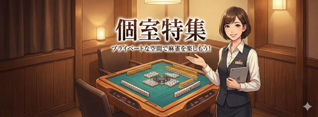 Tokushuses Genre:個室特集 都道府県で検索 北海道(10)青森県(1)岩手県(2)宮城県(1)秋田県(1)山形県(2)福島県(1)茨城県(1)栃木県(1)群馬県(1)埼玉県(10)千葉県(4)東京都(68)神奈川県(6)長野県(2)岐阜県(1)静岡県(1)愛知県(12)三重県(3)京都府(1)大阪府(9)兵庫県(2)岡山県(1)広島県(2)山口県(2)香川県(1)愛媛県(2)福岡県(5)熊本県(3)大分県(1)鹿児島県(1) 北海道 注目 麻雀 夢道場 札幌店 [貸卓(2F) 麻雀教室・サロン(3F)] 札幌市電山鼻線 西4丁目駅 徒歩3分 麻雀教室、セット、健康麻雀 セット ¥295/般 仲間と愉しむ空間、洗練された空間の貸卓専門店です。 【2F】貸卓専門フロア ・個室完備(グリーンチャンネル視聴可能) ・21卓 【3F】カルチャーフロアー ・『女性のためのマージャン教室』を毎週開催中! イチオシ 1 女性のためのマージャン教室(札幌店) 注目 麻雀 夢道場 白石店 セット、麻雀教室 セット ¥300/般 仲間と愉しむ空間、アットホームな空間の貸卓専門店。 スタッフの雰囲気、お店の空気、手作り料理など、お店全体をつつむ暖かさが特徴です! イチオシ 1 お得なランチ♪ 麻雀 ZERO 札幌市営地下鉄南北線 すすきの駅 徒歩5分 三麻、セット、フリー、四麻 フリー ¥600/般 セット ¥325/般 アトム倶楽部 札幌市営地下鉄南北線 すすきの駅 189m 三麻、フリー、セット セット ¥0/般 三人麻雀SSS フリー、三麻、セット フリー ¥500/般 セット ¥300/般 まぁじゃん オレンジ 健康麻雀、セット、フリー、麻雀教室 フリー ¥350/般 ¥300/学 セット ¥300/般 ¥200/学 Mah-Jongg Cafe DORA×2(マージャンカフェ ドラドラ) JR根室本線(新得~釧路) 釧路駅 徒歩10分 麻雀サロン スリーピース JR石北本線 北見駅 徒歩5分 雀荘にしき ばにらびーんず 青森県 じゃんき~ 青森店 セット、ノーレート、三麻、四麻、フリー フリー ¥400/般 セット ¥350/般 ¥300/学 岩手県 麻雀cafe のどか 東北新幹線 盛岡駅 徒歩15分 麻雀教室、ノーレート、四麻、フリー、セット フリー ¥400/般 ¥200/学 セット ¥250/般 ¥200/学 フリー麻雀 レインボー フリー、三麻、セット フリー ¥600/般 宮城県 500円ワンコインセット麻雀わんわん 仙台市営地下鉄東西線 青葉通一番町駅 徒歩1分 セット セット ¥187/般 ¥125/学 秋田県 マージャンカフェ ステップ フリー、健康麻雀、セット、四麻、ノーレート、三麻 フリー ¥450/般 ¥200/学 セット ¥450/般 ¥250/学 山形県 2025.12.11 オープン NEWOPEN注目 麻雀ウェルカム 山形七日町店 JR仙山線 山形駅 1.11km フリー、四麻、三麻、セット フリー ¥400/般 セット ¥250/般 ¥125/学 ✨✨✨2025年12月11日(木)オープン✨✨✨ 麻雀ウェルカムが山形市の老舗レストラン:チロル跡地にオープン👏 四人麻雀と三人麻雀の両方が楽しめます🀄 全18卓の広々とした店内で、快適にご遊戯いただけます♪ ・最新卓『AMOSS REXX Ⅲ』完備の個室4部屋✨ ・麻雀の頂による成績管理&ポイント還元🀄 ・20種類以上の豊富なフリードリンク🥤 安心・安全のチェーン店『麻雀ウェルカム』で、ぜひ雀荘デビューを(*´ω`*) 皆様のご来店をお待ちしております! イチオシ 1 最新卓で遊べる個室を4部屋完備✨ 麻雀ねおちゃとら セット、三麻、四麻、麻雀教室、フリー フリー ¥300/般 セット ¥1,200/般 福島県 麻雀TRAIN 郡山店 JR東北本線(黒磯~利府・盛岡) 郡山駅 車で15分 四麻、フリー、三麻、セット フリー ¥300/般 セット ¥325/般 茨城県 注目 ノーレート麻雀 MJcafe ノーレート、セット、四麻 フリー ¥600/般 セット ¥350/般 ✨2026年2月1日 リニューアルオープン✨ ✨✨✨MJCAFEがノーレートフリーのお店に生まれ変わりました✨✨✨ 日本プロ麻雀協会B1リーグ所属 飯田雅貴プロのお店です 茨城県でMリーグルールの麻雀を打てるのは当店だけ❣ 初心者の方でも麻雀を楽しめるようにスタッフがサポートいたしますので、 安心してご来店ください🥰 また中級者・上級者の方にも楽しんでいただけるように、 LINEで簡単に成績を確認できるシステムを導入しました✨ 🎵2025年12月店内改装済🎵 綺麗な店内で麻雀を楽しめます🀄 店内は個室は紙タバコOK! フリーで使用する大ルームは電子タバコのみ喫煙可能です💖 ゲストプロも来店予定🥰 情報は公式LINE、X(旧Twitter)にて、随時告知致します📱 是非トップページからご登録、フォローしてください✨ TEL 029-859-3899 イチオシ 1 セット料金が安い!1時間1400円☆ 栃木県 健康麻雀ゆっくり フリー、健康麻雀、ノーレート、セット、三麻 フリー ¥150/般 ¥100/学 セット ¥300/般 ¥200/学 群馬県 麻雀家 スカイ・ブルー JR両毛線 井野駅 2.61km 埼玉県 2025.10.24 オープン NEWOPEN 個室麻雀 匠 四麻、セット、三麻 セット ¥300/般 注目 麻雀 ぱいんりばー 大宮店 JR京浜東北線 大宮駅 徒歩2分 フリー、セット、三麻、その他 フリー ¥250/般 セット ¥300/般 ¥150/学 ★2025年1月10日(金)ルール改良!お客様はいつでもAかBのルール選択可能!★ ☆現在メンバースタッフ募集中!関東屈指の好条件、ゲームバック80%、入店祝い金20万!時給1300円オーバー多数! ☆☆全個室にMリーグ採用の最新卓レックス3を配備完了!個室でレックス3打ちたいなら当店へ! ☆