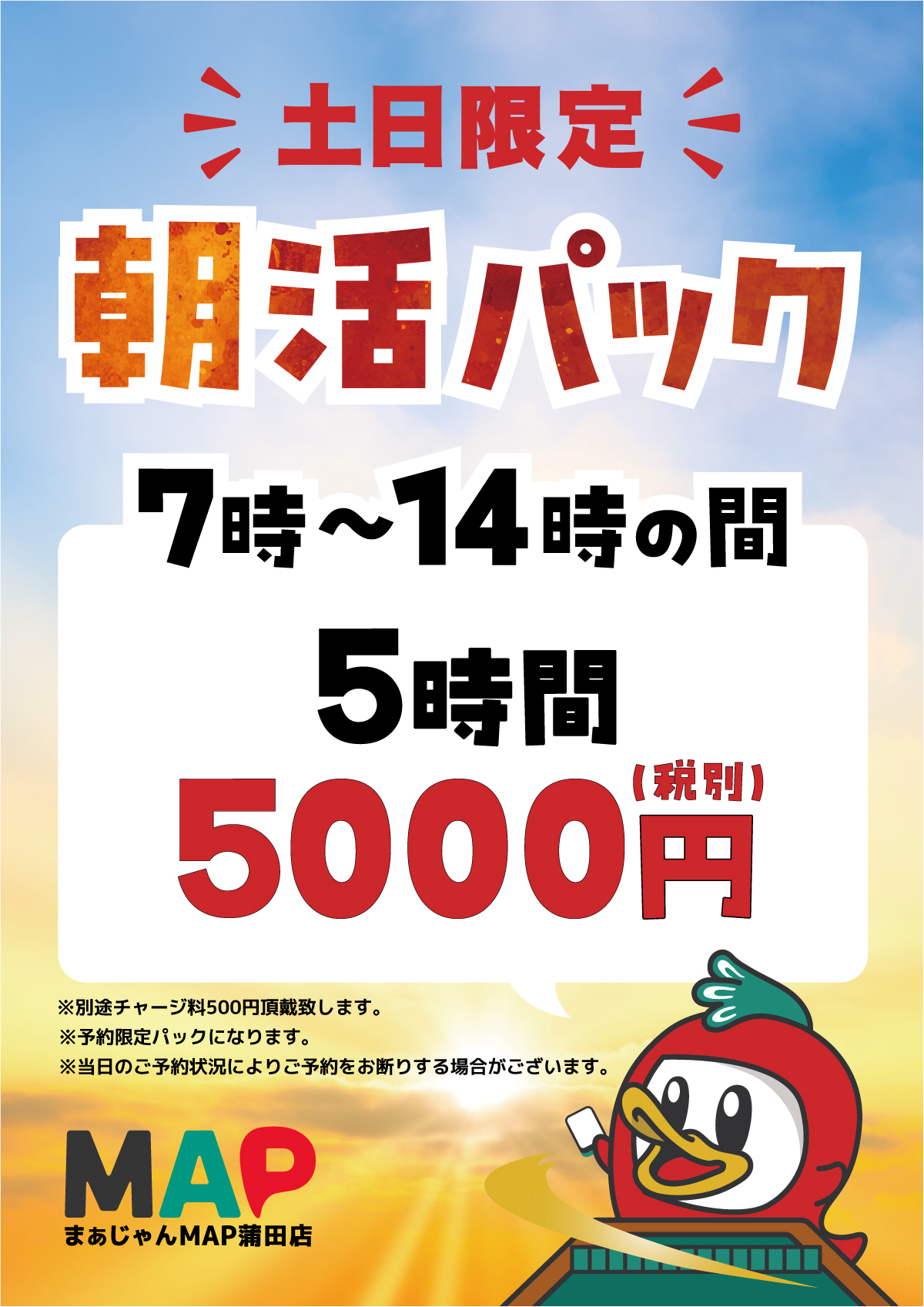 まぁじゃんMAP蒲田店では、**土日祝限定の「朝活パック」**をご用意しています🀄✨