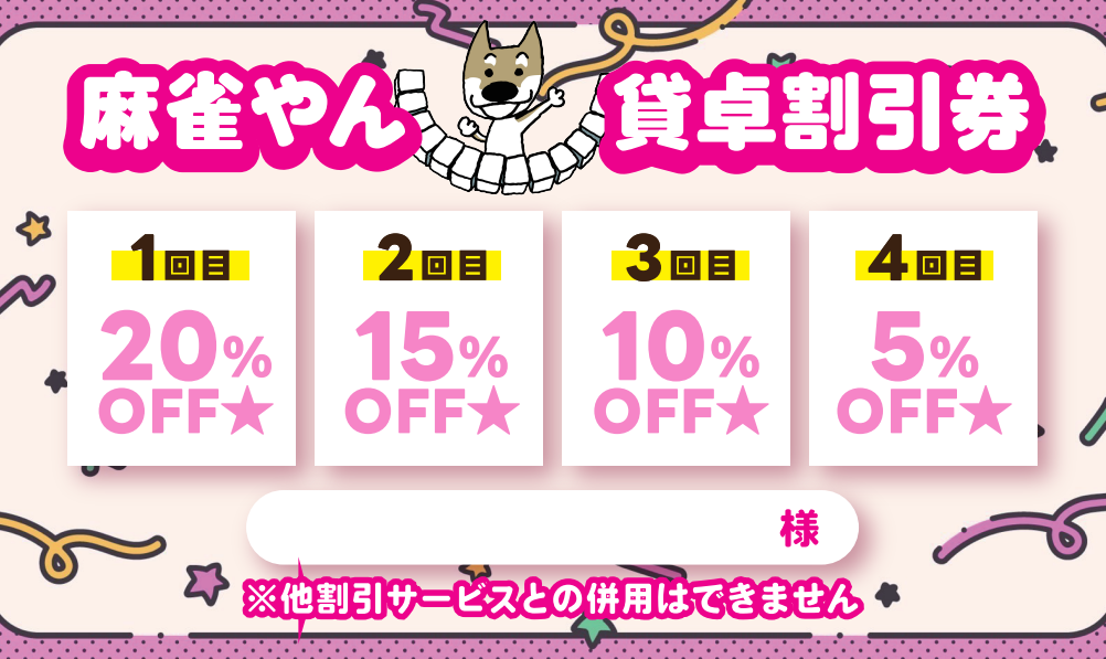 麻雀やんは 初回からいきなり20%OFF で遊んでいただけます!!