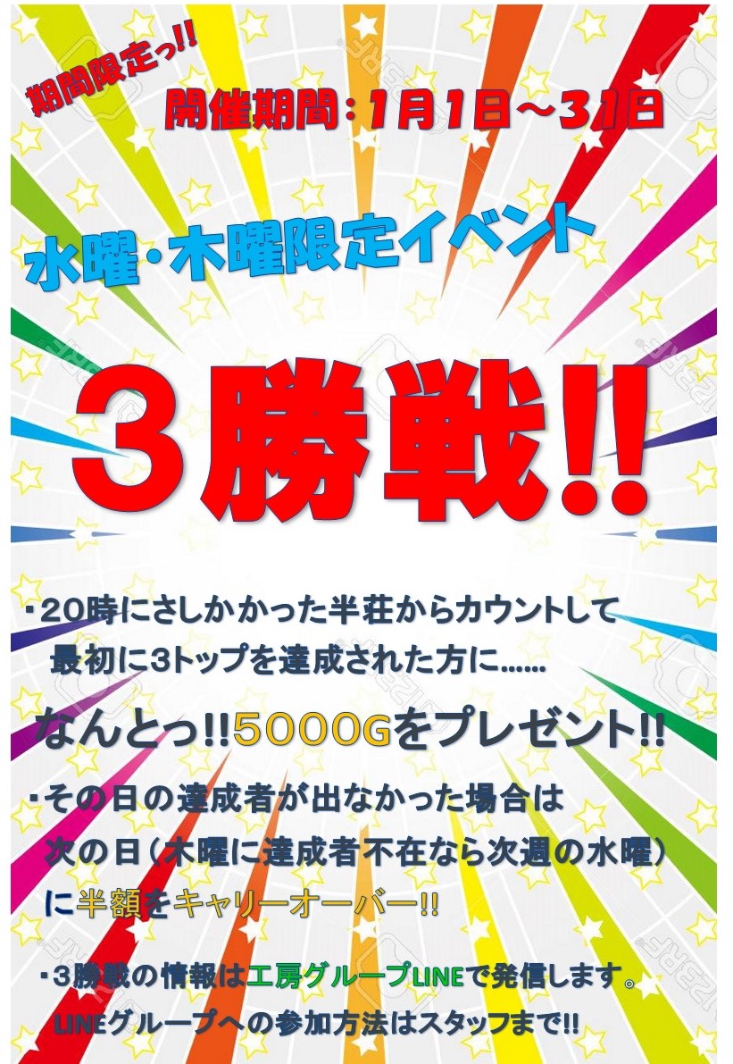 麻雀工房土浦茨城県 マージャンコウボウツチウラ 茨城県 土浦駅 徒歩10分 セット、フリー 電話する029-835-8224 地図 店舗トップ ルール 写真/動画 イベント 求人 クーポン プロ イチオシ ランキング クチコミ イベント詳細 イベント 🔥水、木限定3勝戦スタート🔥 固定イベント 詳細は画像をご覧下さい🎵 イベント 🔥激アツの新イベント🔥✨トレジャーハント✨ついに始動❤ 固定イベント 赤字必死の大還元イベントが9月1日よりついに始動‼️‼️‼️ 詳細は画像または店内スタッフまで!!! さらに読み込む... 次の6件〜2件/全2件の検索 お店のコトを友達に教える Facebook X(旧Twitter) Line Mail お店を評価する 閉店・休業・移転・情報違い報告 クチコミ投稿 報告内容詳細※必須 閉店 休業 移転 情報違い 送信する