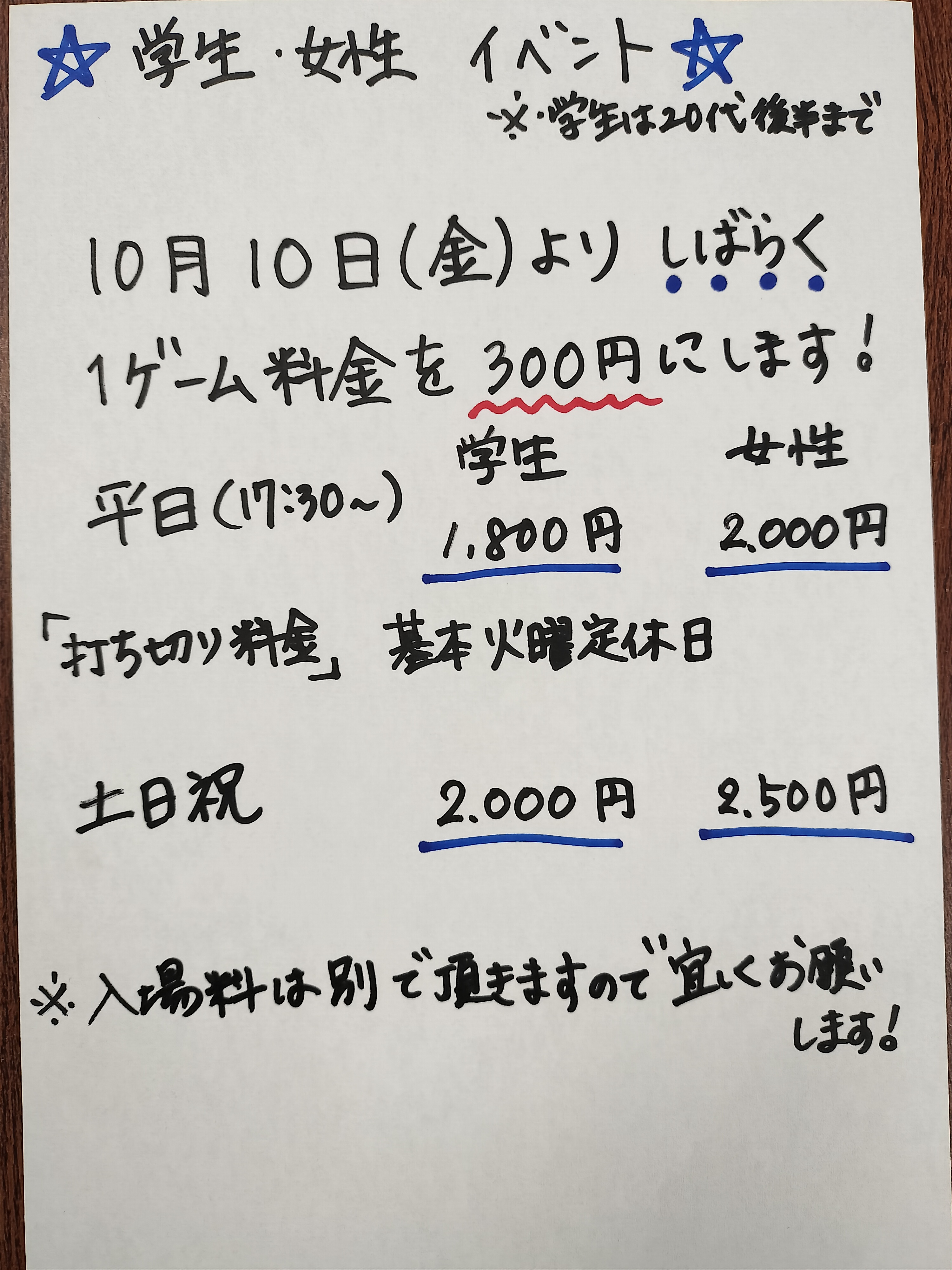 まぁじゃんぱーく Blue Rose愛知県 マァジャンパーク ブルーローズ 愛知県 今池駅 8番出口徒歩1分以内(桜通線の方が改札から近いのでオススメ) 四麻、三麻、ノーレート、麻雀教室、セット、フリー 電話する052-990-9886 地図 店舗トップ ルール 写真/動画 イベント 求人 クーポン プロ イチオシ ランキング クチコミ イベント詳細 イベント ☆期間限定☆10月10日より学生・女性が1ゲーム300円フリー激安♪ 固定イベント 10月10日よりしばらくの間ですが 学生・女性のお客様1ゲーム300円に致します☆ 打ち切り料金も激安! 学生 平日1800円 土日祝 2000円 女性 平日 2000円 土日祝 2500円 皆さんに楽しんで麻雀して頂きたいのでほぼ昔の値段に戻してます! 是非お気軽に遊びに来てください♪ ※1 入場料別途300円頂きます ※2 学生様は〜20代まで ※3 女性の方は年齢は関係なく適応致します イベント 襟川麻衣子プロ大会今年もありがとうございました! 日時 : 2025年7月24日(木)~2025年9月27日(土) 9月27日(土)に Мリーグでも有名の日本プロ麻雀連盟襟川麻衣子プロを今年もゲスト大会を開催致しました! 笑いあり熱い麻雀もあり♪5連勝されたノーレート対抗戦にも出場されるやじーさんが優勝☆ おめでとうございます☆来年もお呼びする予定ですので皆様ご参加お待ちしてます! イベント 河内盛将プロ主催の麻雀教室♪ 固定イベント 当店では最高位戦日本プロ麻雀協会所属の甲冑系雀士、河内盛将プロの麻雀教室を開講! こんな人におすすめの教室です♪ ・プロアマ、GPC等の大会でいい成績を残したい! ・ネット麻雀の段位を上げたい! ・麻雀の知識を増やして、プロの対局動画をより楽しみたい! ・自分の麻雀に自信をつけて、麻雀談義により花を咲かせたい! ・様々な戦術に触れ、麻雀の奥深さを味わいたい! 詳しくは主催の「河内プロ(090-7862-4686)河内直通」もしくはBlueRoseに直接お問い合わせください♪ さらに読み込む... 次の6件〜3件/全3件の検索 お店のコトを友達に教える Facebook X(旧Twitter) Line Mail お店を評価する 閉店・休業・移転・情報違い報告 クチコミ投稿 報告内容詳細※必須 閉店 休業 移転 情報違い 送信する