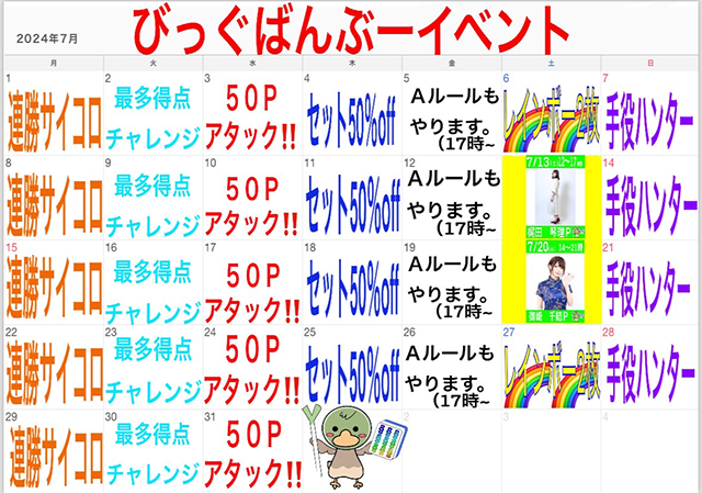 びっぐばんぶー東京都 ビッグバンブー 東京都 巣鴨駅 徒歩1分 三麻、セット、フリー 電話する070-2440-0999 地図 店舗トップ ルール 写真/動画 イベント 求人 クーポン プロ イチオシ ランキング クチコミ イベント詳細 イベント ザンリーグフリー開催🀄 日時 : 2025年6月6日(金)~2025年7月25日(金) 6月6日(金)、7月18日(金)、7月25日(金)にザンリーグを開催致します🀄 都内でザンリーグルールを打てるのは『びっぐばんぶー』だけ✨ イベント ✨✨✨7月イベント情報✨✨✨ 日時 : 2024年7月1日(月)~2024年7月31日(水) 7月も毎日イベント開催中です(^^)/ 皆様のご参加をお待ちしております!!! さらに読み込む... 次の6件〜2件/全2件の検索 お店のコトを友達に教える Facebook X(旧Twitter) Line Mail お店を評価する 閉店・休業・移転・情報違い報告 クチコミ投稿 報告内容詳細※必須 閉店 休業 移転 情報違い 送信する