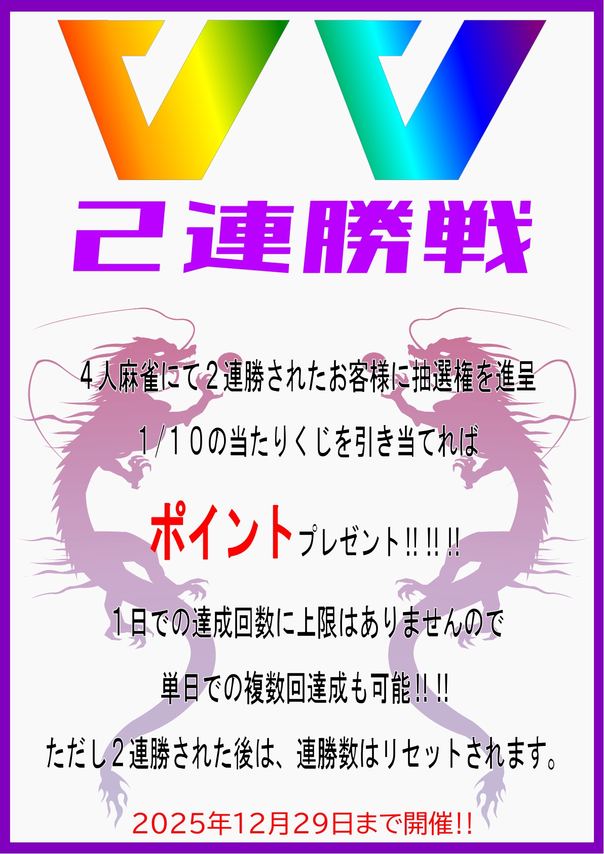 2025.08.01 オープン NEWOPENドンキホーテ21茨城県 ドンキホーテ 茨城県 つくば駅 徒歩10分 四麻、三麻、セット、フリー 電話する029-851-5855 地図 店舗トップ ルール 写真/動画 イベント 求人 クーポン プロ イチオシ ランキング クチコミ イベント詳細 スポットライトイベント イベント 学生フリー半額!!! 固定イベント 学生証のご提示でフリーは全コース料金半額でご案内いたします!!! イベント 2連勝戦 日時 : 2025年12月1日(月)~2025年12月29日(月) 2連勝されたお客様にくじを引いていただきます。 1/10でお店よりポイント進呈!! 単日での上限はありませんので、複数回獲得のチャンスもあります!! イベント ミステリーバウンティ 日時 : 2025年11月1日(土)~2025年11月30日(日) 同卓者を飛ばしたら抽選参加券を進呈いたします。 参加券1枚で確率1/50以下のくじを引くことができます。 見事A賞を引くことができたら豪華賞品GET! さらにA賞が出るまでクジは補充しません!!なので、参加者が増えれば増えるほどチャンス!? イベント 虹祭り!!! 固定イベント 全国でも当店だけ???虹6筒あります!!! 毎月6のつく日限定!!! 詳しくはドンキホーテ21で!!! イベント 3麻ジャックポット 固定イベント オープン立直一発ツモ白ポッチで??? さらに読み込む... 次の6件〜6件/全6件の検索 お店のコトを友達に教える Facebook X(旧Twitter) Line Mail お店を評価する 閉店・休業・移転・情報違い報告 クチコミ投稿 報告内容詳細※必須 閉店 休業 移転 情報違い 送信する