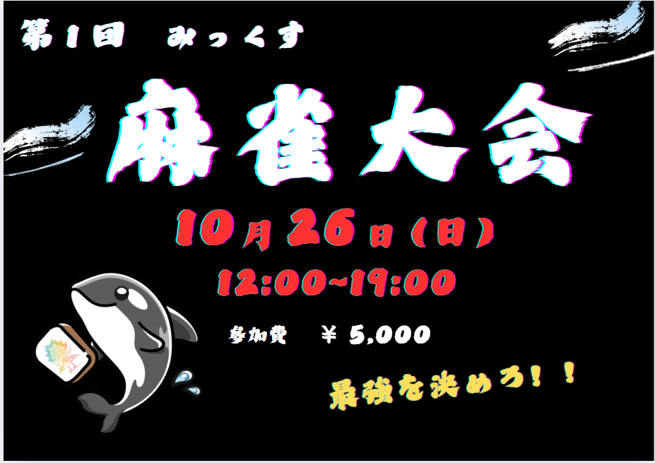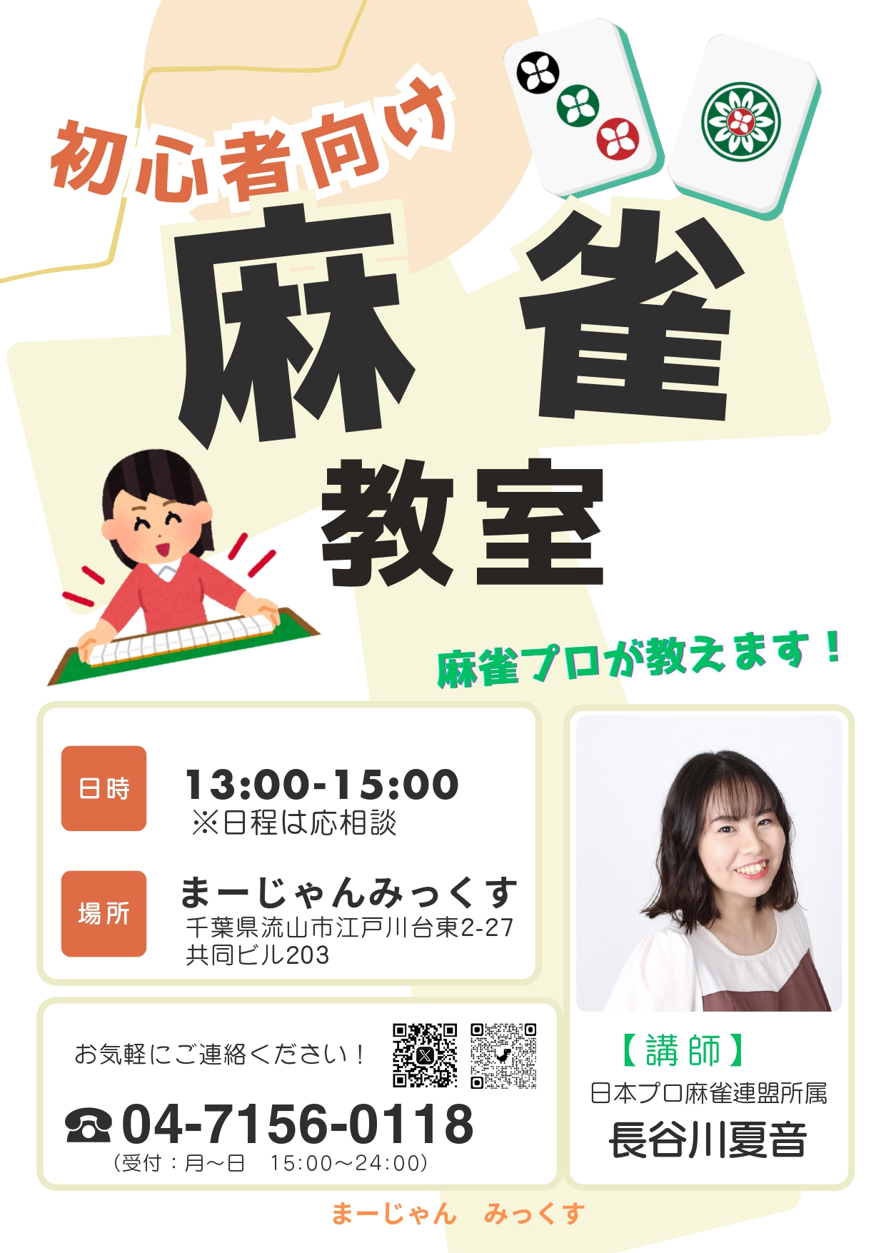 まーじゃんみっくす千葉県 マージャン ミックス 千葉県 江戸川台駅 東口より徒歩2分 四麻、三麻、ノーレート、健康麻雀、セット、フリー、麻雀教室 電話する04-7156-0118 地図 店舗トップ ルール 写真/動画 イベント 求人 クーポン プロ イチオシ ランキング クチコミ イベント詳細 イベント 第1回みっくす麻雀大会! 日時 : 2025年10月4日(土)~2025年10月19日(日) この度、当店にて 第1回みっくす麻雀大会を 開催いたします! ▶開催日:10月26日(日) ▶時間:12:00〜19:00 ▶参加費:5,000円 今回は学生から大人まで、全ての方が真剣勝負を楽しんでいただける大会となっております! 腕に自信のある方はもちろん、 真剣な対局の空気を味わいたい方や麻雀仲間を増やしたい方の ご参加も大歓迎です! 参加希望の方は、お早めにスタッフまでお声がけください。 定員に達し次第、受付を締め切らせていただきます。 ご参加を心よりお待ちしております! イベント NEW!!JACKPOT!!リニューアル!!三麻ver 固定イベント 三麻の条件 リーチ後、ピンク北を抜いてツモだったら「JACKPOT!!」 四麻の条件 リーチして一発でツモった牌が裏ドラだったら「JACKPOT!!」 みんなでたくさんリーチをしよう!! イベント 麻雀初心者の方向けの麻雀教室も実施しています!! 日時 : 2025年2月3日(月)~2035年2月3日(土) 麻雀のルールを1から学びたい方向けの麻雀教室を実施しています! 料金:1,500円/1時間(講師代、貸卓代、フリードリンク代込み) ※完全予約制です 日本プロ麻雀連盟所属の女流プロが1から丁寧に麻雀のルールや所作を教えます! 2日前までの予約必須ですので、参加希望の方はお電話にてご連絡ください。 イベント ☆ノーレート☆Mリーグルール☆みっくすMルールクラブ参加者募集中! 日時 : 2024年12月7日(土)~2039年12月7日(水) この度、ノーレート、Mリーグルールで、麻雀を打ちたいという方向けのコミュニティーを作成しました! ノーレートで麻雀を打ちたい方や初心者・中級者の方を大募集中です! 【場所】 まーじゃんみっくす 【ルール】 ノーレート、Mリーグルール(50分+1局) 【時間】 10:00〜15:00(予定) ※3日前までの予約必須です 【料金】 500円/1半荘 ※学割あります ※フリードリンク付きです 今のところ不定期開催ですので参加ご希望の方は、お電話かXのDMにてご連絡ください!! イベント 役満コレクション 固定イベント みんなで役満を狙え! さらに読み込む... 次の6件〜5件/全5件の検索 お店のコトを友達に教える Facebook X(旧Twitter) Line Mail お店を評価する 閉店・休業・移転・情報違い報告 クチコミ投稿 報告内容詳細※必須 閉店 休業 移転 情報違い 送信する