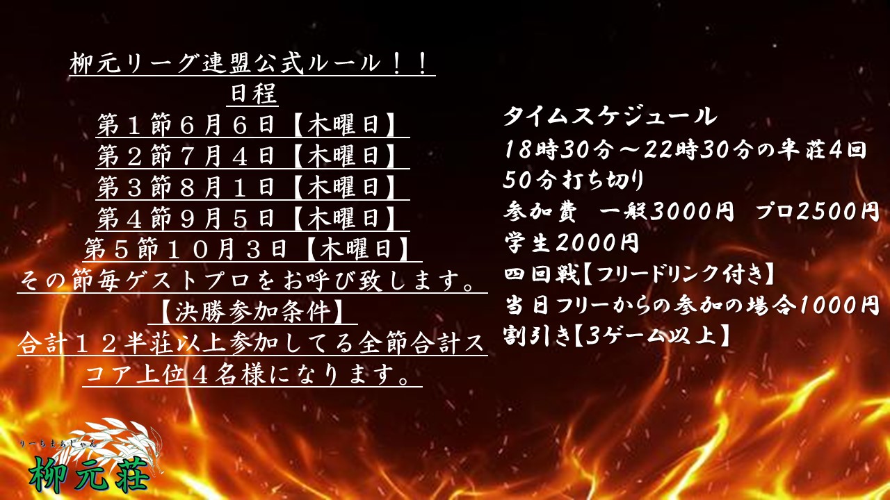 柳元荘にて行われる日本プロ麻雀連盟公式ルールの