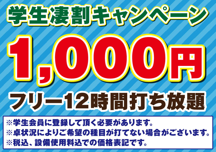 学生凄割(フリ-12h 1,000円打ち放題)に参加できます。
