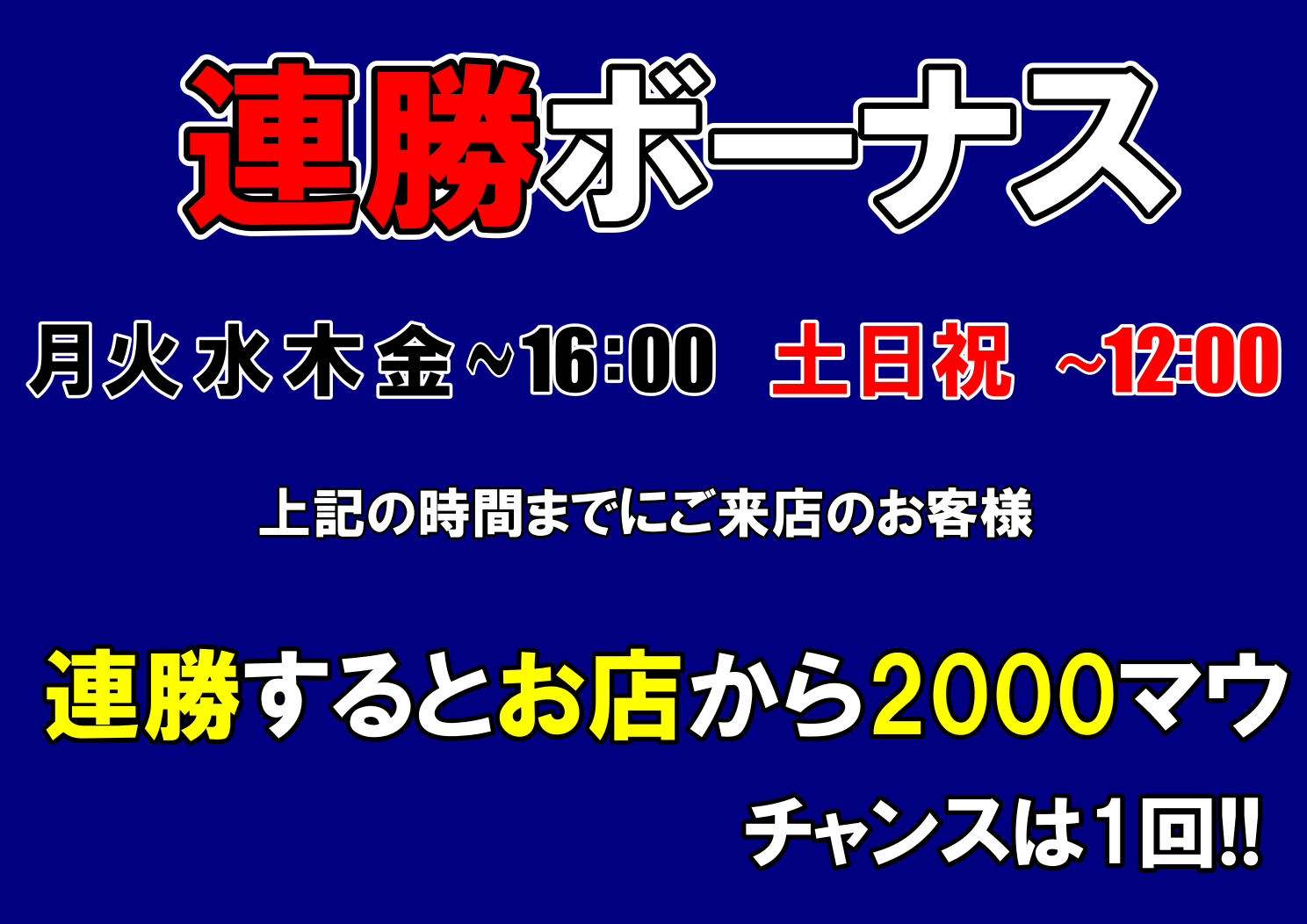 麻雀 Mah-マウ-香川県 マージャン マウ 香川県 瓦町駅 150m フリー、セット 電話する090-9452-1326 地図 店舗トップ ルール 写真/動画 イベント 求人 クーポン プロ イチオシ ランキング クチコミ イベント詳細 イベント チャレンジ9 固定イベント 半荘9回打つと賞品ゲットのチャンス!! 9半荘目にトップを取るだけで賞品ゲット!! イベント 連勝チャレンジ 固定イベント 平日16時までの来店、土日祝12時までの来店で連勝チャレンジの権利をゲット!! イベント 駐車場代還元サービス 固定イベント 駐車場代還元 フリー麻雀をご利用のお客様限定! 駐車場代を還元いたします♪ 詳細はご来店時ご確認下さい。 イベント 女性と学生割引!! 固定イベント 女性と学生のフリー料金100円割引! 1ゲーム400円⇒300円に!! イベント 新規サービス!! 固定イベント 新規サービス ご新規のお客様は5,000円相当のゲーム券プレゼント!! さらに読み込む... 次の6件〜5件/全5件の検索 お店のコトを友達に教える Facebook X(旧Twitter) Line Mail お店を評価する 閉店・休業・移転・情報違い報告 クチコミ投稿 報告内容詳細※必須 閉店 休業 移転 情報違い 送信する