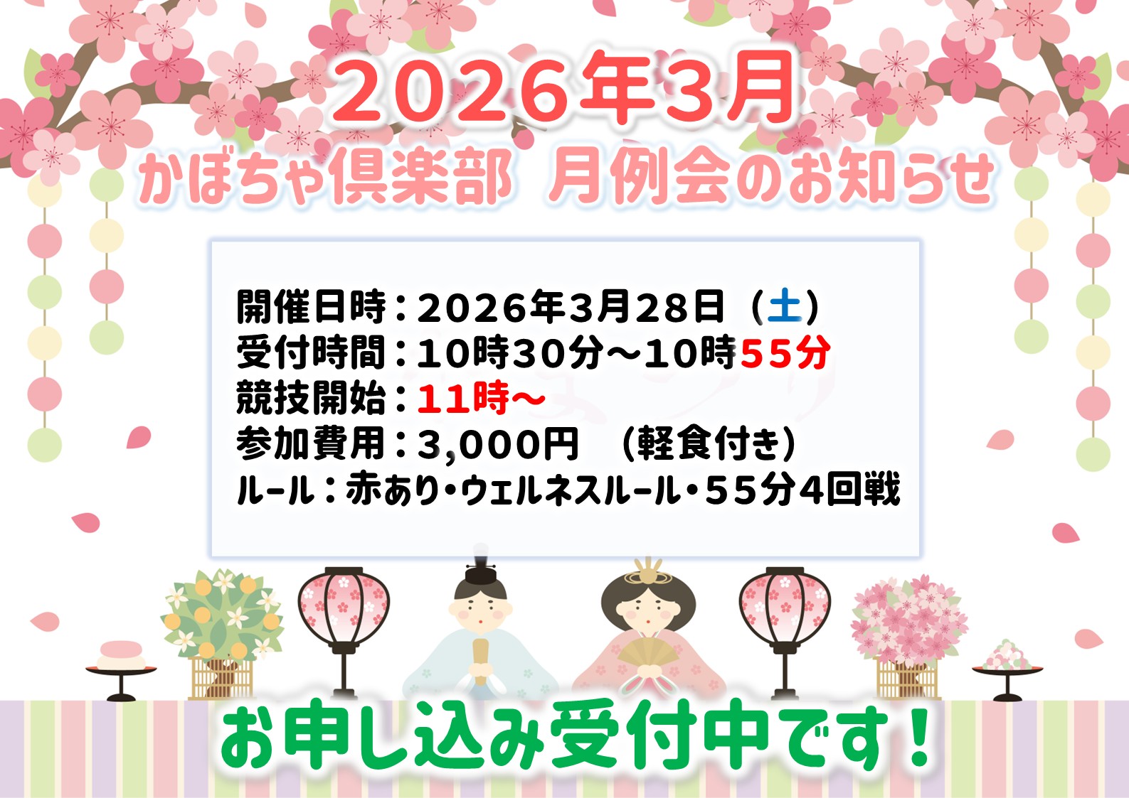 かぼちゃ倶楽部東京都 カボチャクラブ 東京都 両国駅 駅から徒歩1分 セット、健康麻雀、麻雀教室、ノーレート 電話する03-5608-5066 地図 店舗トップ ルール 写真/動画 イベント 求人 クーポン プロ イチオシ ランキング クチコミ イベント詳細 スポットライトイベント イベント 日曜イベント「スプリングカップ」開催! 固定イベント 4/12(日)10時30分受付開始、11時スタート。 参加費3,500円軽食付き。 ウェルネスマージャンルール(赤牌有り)。 半荘4回戦。オカ有り・ウマ10-30。 初心者の方や、まだ来店されたことのない方の参加も大歓迎です! イベント かぼちゃ倶楽部3月度月例会開催! 固定イベント 3/28(土)10時30分受付開始、11時スタート。 参加費3,000円軽食付き。 ウェルネスマージャンルール、半荘4回戦。 初心者の方や、まだ来店されたことのない方の参加も大歓迎です! さらに読み込む... 次の6件〜2件/全2件の検索 お店のコトを友達に教える Facebook X(旧Twitter) Line Mail お店を評価する 閉店・休業・移転・情報違い報告 クチコミ投稿 報告内容詳細※必須 閉店 休業 移転 情報違い 送信する