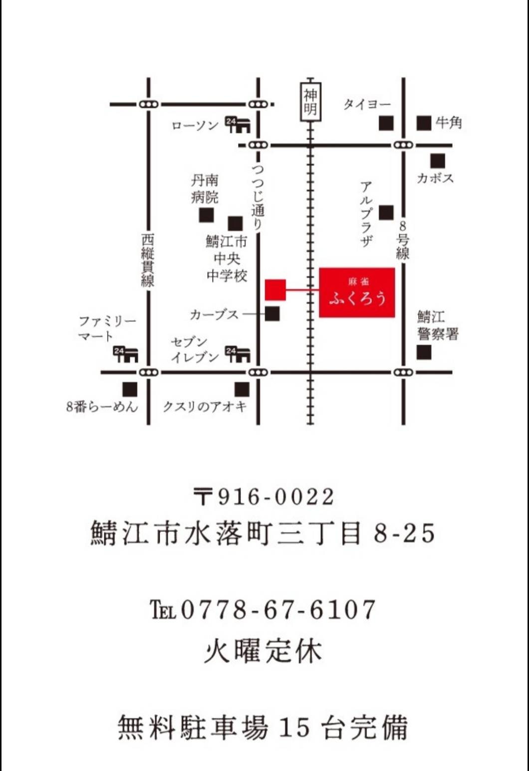 麻雀ふくろう福井県 マージャンフクロウ 福井県 水落駅 徒歩8分 四麻、セット、フリー 電話する0778-67-6107 地図 店舗トップ ルール 写真/動画 イベント 求人 クーポン プロ イチオシ ランキング クチコミ 写真一覧 動画一覧 お店のコトを友達に教える Facebook X(旧Twitter) Line Mail お店を評価する 閉店・休業・移転・情報違い報告 クチコミ投稿 報告内容詳細※必須 閉店 休業 移転 情報違い 送信する