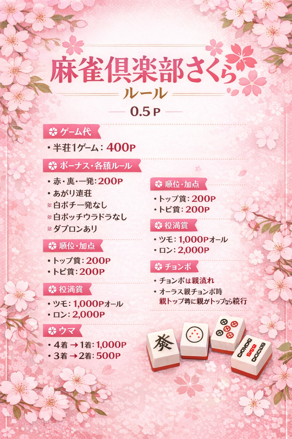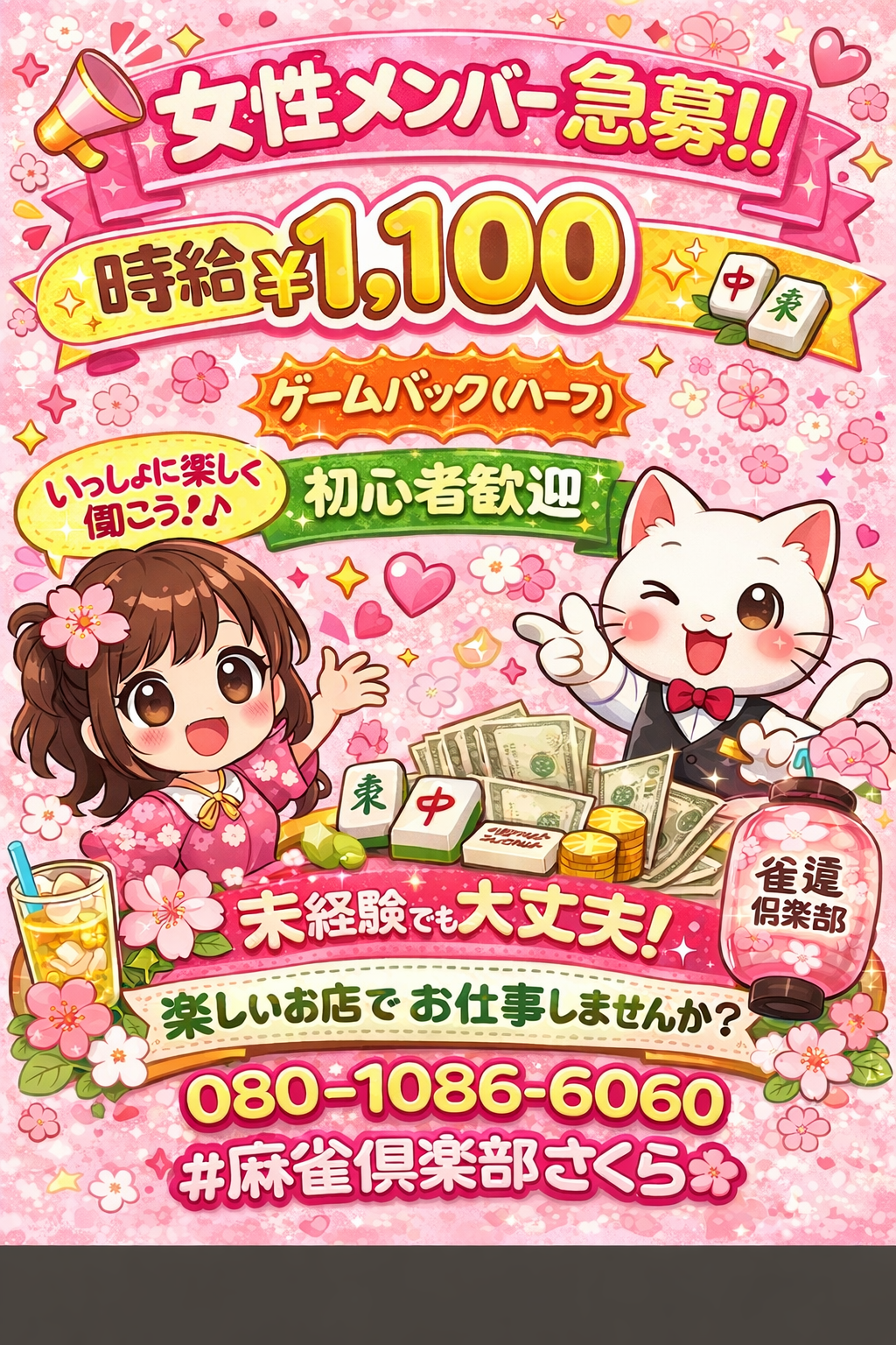 麻雀倶楽部さくら福島県 マージャンクラブサクラ 四麻、セット、フリー 電話する080-6060-1086 地図 店舗トップ ルール 写真/動画 イベント 求人 クーポン プロ イチオシ ランキング クチコミ 写真一覧 動画一覧 お店のコトを友達に教える Facebook X(旧Twitter) Line Mail お店を評価する 閉店・休業・移転・情報違い報告 クチコミ投稿 報告内容詳細※必須 閉店 休業 移転 情報違い 送信する