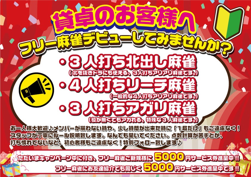 あかとんぼ兵庫県 アカトンボ 兵庫県 曽根駅 車で3分 四麻、ノーレート、フリー、セット、健康麻雀、麻雀教室、三麻 電話する079-448-7755 地図 店舗トップ ルール 写真/動画 イベント 求人 クーポン プロ イチオシ ランキング クチコミ 写真一覧 動画一覧 お店のコトを友達に教える Facebook X(旧Twitter) Line Mail お店を評価する 閉店・休業・移転・情報違い報告 クチコミ投稿 報告内容詳細※必須 閉店 休業 移転 情報違い 送信する