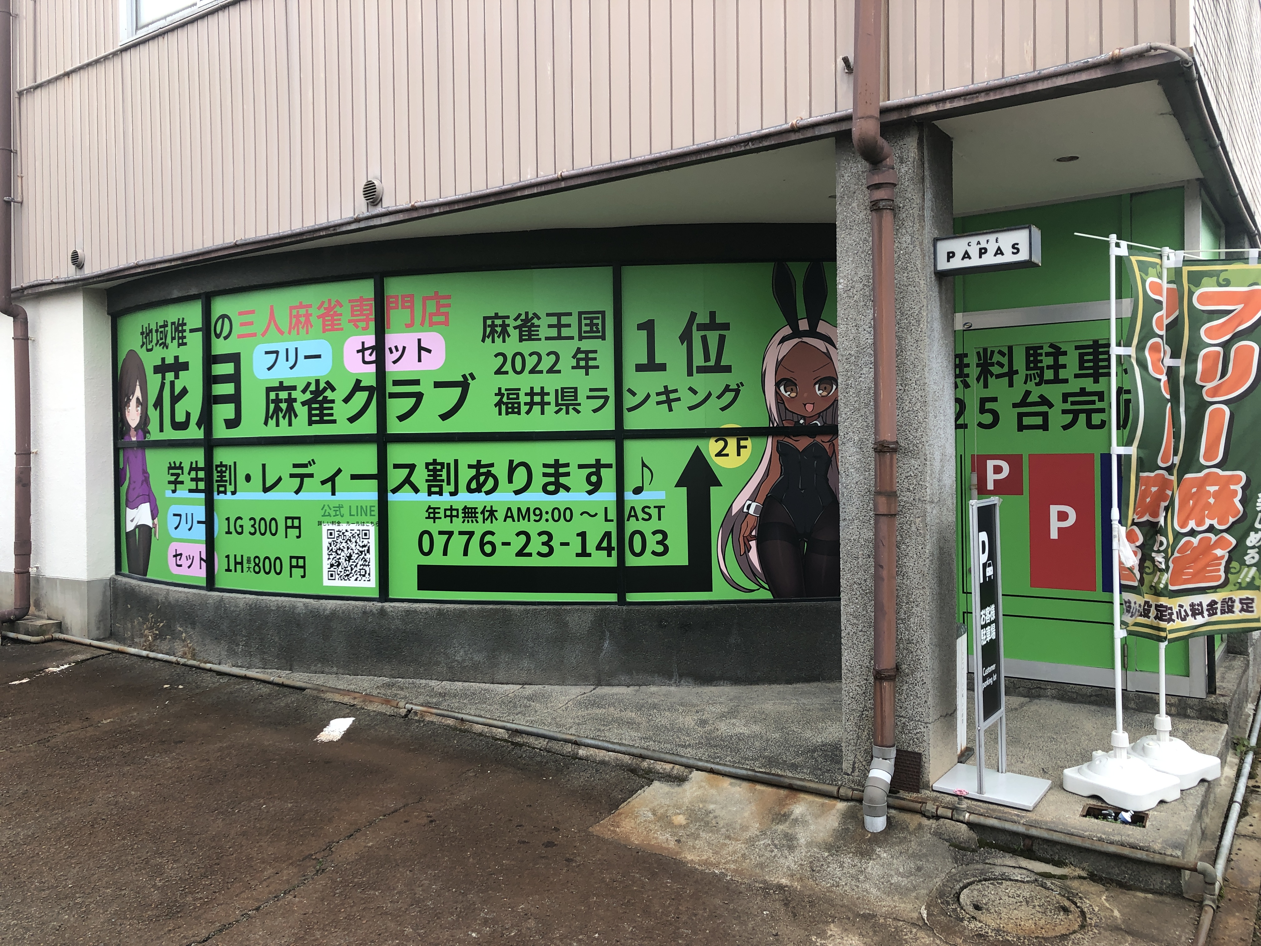 【福井最大級】花月麻雀クラブ【全自動卓13台完備】福井県 カゲツマージャンクラブ 福井県 福大前西福井駅 徒歩10分 フリー、セット、三麻 電話する050-1794-9183 地図 店舗トップ ルール 写真/動画 イベント 求人 クーポン プロ イチオシ ランキング クチコミ 写真一覧 動画一覧 お店のコトを友達に教える Facebook X(旧Twitter) Line Mail お店を評価する 閉店・休業・移転・情報違い報告 クチコミ投稿 報告内容詳細※必須 閉店 休業 移転 情報違い 送信する