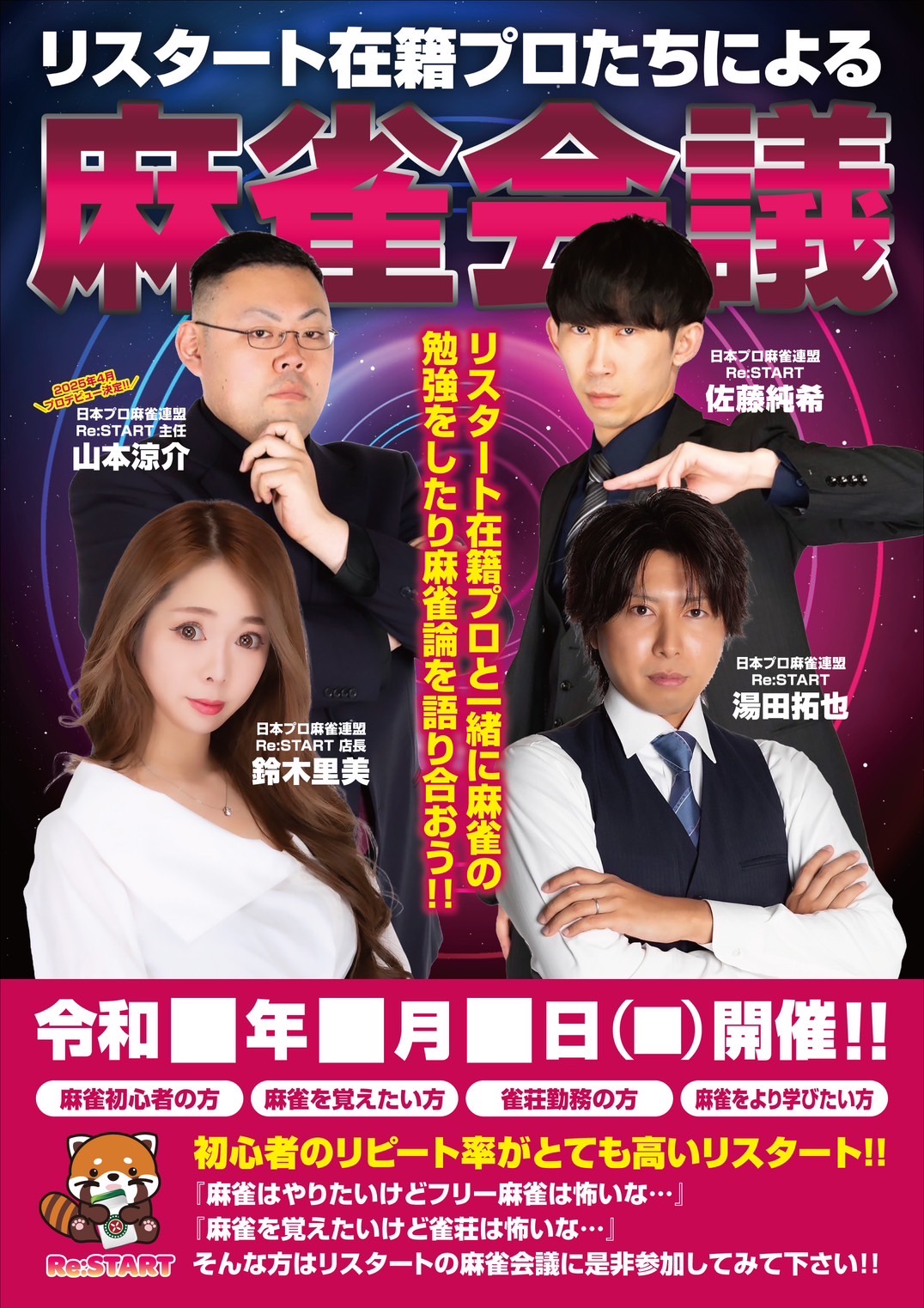 Re:START福島県 リスタート 福島県 郡山駅 車5分 四麻、三麻、セット、フリー 電話する024-953-7331 地図 店舗トップ ルール 写真/動画 イベント 求人 クーポン プロ イチオシ ランキング クチコミ イチオシ詳細 イチオシ 1 女性スタッフ多数在籍!男性スタッフも多数在籍! 女性のお客様も、安心してお越しください♪ フリー麻雀初心者の方も安心してお越しくださいませ♪お一人でもご安心してご来店下さいませ♪ 従業員募集中‼わいわい働きたい方大歓迎☆ 日曜日は男性従業員の日☆ イチオシ 2 お気軽に立ち寄れるお店♡ 楽しく麻雀しましょう☆ ・お誕生日のお手伝いなどご相談下さい ・貸し切りご相談ください♡ 駐車場完備‼第1駐車場は徒歩10秒♡ 指定駐車場以外へのご駐車はお断りしております‼分からない方は必ずお電話くださいね♡写真/動画に駐車場の写真UPしております‼ 大画面で麻雀チャンネルを見ながらお食事♪軽食メニュー・アルコール類も豊富☆お気軽にお立ち寄りください☆ イチオシ 3 県内在籍プロ率ナンバー1☆ 日本プロ麻雀連盟 鈴木里美プロが在籍☆ 日本プロ麻雀連盟 湯田拓也プロが在籍☆ 日本プロ麻雀連盟 佐藤純希プロ在籍☆ 日本プロ麻雀連盟 山本涼介プロ在籍☆ 勉強会不定期開催しております! お店のコトを友達に教える Facebook X(旧Twitter) Line Mail お店を評価する 閉店・休業・移転・情報違い報告 クチコミ投稿 報告内容詳細※必須 閉店 休業 移転 情報違い 送信する