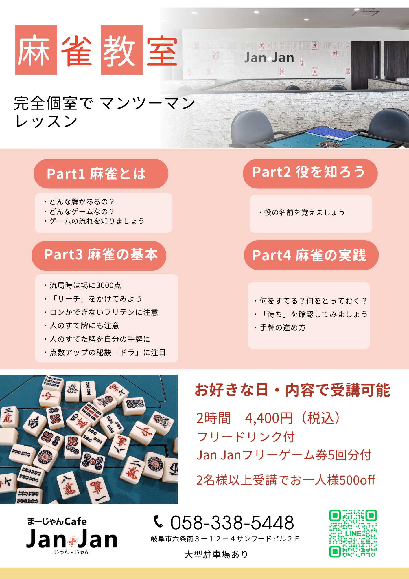 まーじゃんcafe JanJan岐阜県 マージャンカフェジャンジャン 岐阜県 岐阜駅 2.48km 四麻、ノーレート、麻雀教室、健康麻雀、セット、フリー 電話する058-338-5448 地図 店舗トップ ルール 写真/動画 イベント 求人 クーポン プロ イチオシ ランキング クチコミ イチオシ詳細 イチオシ 1 個人麻雀教室開催中 麻雀をこれから覚えたい方、やったことある方、どんな方でも受けること可能です。 イチオシ 2 学生フリー麻雀キャンペーン 学生キャンペーン!! フリー麻雀初めての方、いつも打っている方もキャンペーンの機会に是非お越しください。 イチオシ 3 第3回JanJanペアマッチ 第3回JanJanペアマッチ開催決定!! 友達、知り合い、家族とペアを組んで優勝目指しましょう! 決勝戦に進んだペアはMリーグさながらの放送対局に出場できます。 1人での参加もOK!当店でペアを組ませていただきます。 申し込みは下記のGoogleフォームでお願いします。 https://forms.gle/czv1H197bJHx7rJt7 お店のコトを友達に教える Facebook X(旧Twitter) Line Mail お店を評価する 閉店・休業・移転・情報違い報告 クチコミ投稿 報告内容詳細※必須 閉店 休業 移転 情報違い 送信する