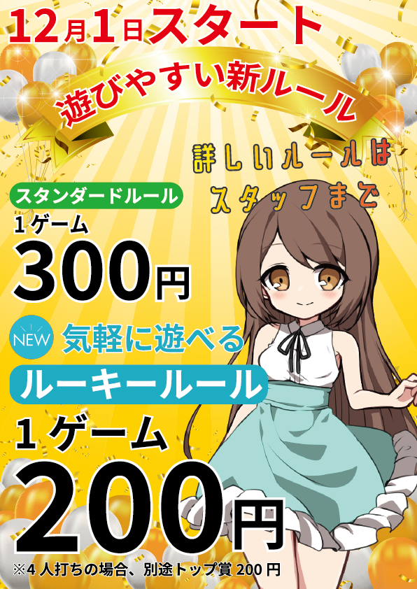【福井最大級】花月麻雀クラブ【全自動卓13台完備】福井県 カゲツマージャンクラブ 福井県 福大前西福井駅 徒歩10分 フリー、セット、三麻 電話する050-1794-9183 地図 店舗トップ ルール 写真/動画 イベント 求人 クーポン プロ イチオシ ランキング クチコミ イチオシ詳細 スポットライトイチオシ イチオシ 1 【フリー】成績管理システム導入♪ フリーの成績管理しているので、自分が何半荘打ったかやトップ率、平均着順を後から見ることができます♪ 客観的に自分の麻雀を分析することができます! 今後はランキング機能も実装予定!!! イチオシ 2 【セット】学生1000円で終日打ち放題♪ ◎学生セットお一人様1000円で打ち放題!!! 大学生、専門学生のみなさーん!! 終日1000円で打ち放題♪お一人様でも対象♪ 土、日、祝日もOK( *´艸`) イチオシ 3 【フリー】気軽に遊べる「ルーキー」ルールが新登場! 今までのスタンダードルールよりもっと手軽に遊べる新ルールが登場★ フリー麻雀の入門として、学生の方、初心者の方、サラリーマンの方、麻雀がもっとうまくなりたい人にピッタリのルールです★ お店のコトを友達に教える Facebook X(旧Twitter) Line Mail お店を評価する 閉店・休業・移転・情報違い報告 クチコミ投稿 報告内容詳細※必須 閉店 休業 移転 情報違い 送信する