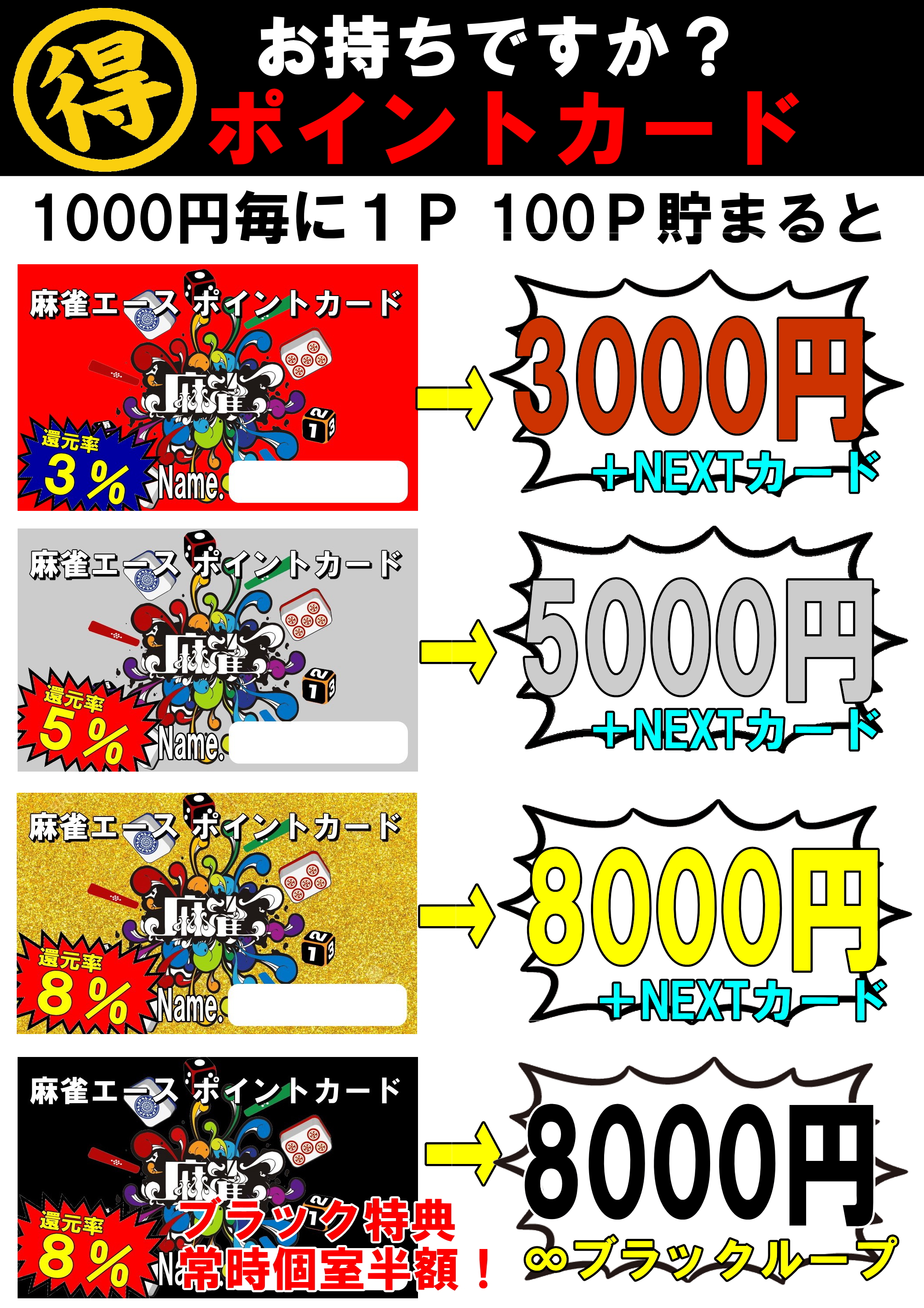 mahjongA(マージャンエース)兵庫県 マージャンエース 兵庫県 尼崎駅 徒歩3分 フリー、セット、三麻 電話する06-6413-1790 地図 店舗トップ ルール 写真/動画 イベント 求人 クーポン プロ イチオシ ランキング クチコミ イチオシ詳細 イチオシ 1 月額制フリー麻雀 月っパス 定額制のフリー麻雀登場!! 来れば来るほどお得♪ 打てば打つほどお得♪ 定額制でゲーム代がかからないから打ちすぎて負けるって事はありませんww 是非お試し下さい!! イチオシ 2 地域No1激安割引☆なんと1時間お1人250円 「全自動卓でマージャンが打ちたいけど高いしな・・・」と思っている学生の皆さん、それは大間違い‼ 当店ではなんと1時間お1人様250円でご案内させて頂きます。さらにさらにソフトドリンク飲み放題プランもございます‼ 綺麗で明るく広々とした店内、どうぞ心ゆくまでご堪能下さい♪ 女性の方は貸卓通常料金がなんと半額! 貯めてお得に遊びましょう♪ 還元率最大8%!!!! イチオシ 3 当店自慢のお食事メニュー‼ 当店ではお食事にも力を入れて取り組んでおります。ボリューム満点で味もおいしいお食事をぜひ一度味わってください♪ お店のコトを友達に教える Facebook X(旧Twitter) Line Mail お店を評価する 閉店・休業・移転・情報違い報告 クチコミ投稿 報告内容詳細※必須 閉店 休業 移転 情報違い 送信する