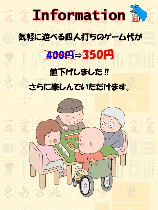 麻雀 JAM(ジャム) 梅田店大阪府 マージャン ジャム ウメダテン 大阪府 梅田駅 徒歩4分 セット、フリー 電話する06-6362-5511 地図 店舗トップ ルール 写真/動画 イベント 求人 クーポン プロ イチオシ ランキング クチコミ イチオシ詳細 スポットライトイチオシ イチオシ 1 学生割引キャンペーン 500円(税抜) 1卓 / 1時間 ※平日の月曜~木曜(祝祭日を除く) ※フリードリンク無し アルコール類以外の持込OK! ※学生証を2名以上の提示が必要です。 イチオシ 2 ゲーム代値下げ‼ 【四人打ち】 ゲーム代400円⇒350円 値下げいたしました♡ 気軽に楽しんでください。 お店のコトを友達に教える Facebook X(旧Twitter) Line Mail お店を評価する 閉店・休業・移転・情報違い報告 クチコミ投稿 報告内容詳細※必須 閉店 休業 移転 情報違い 送信する