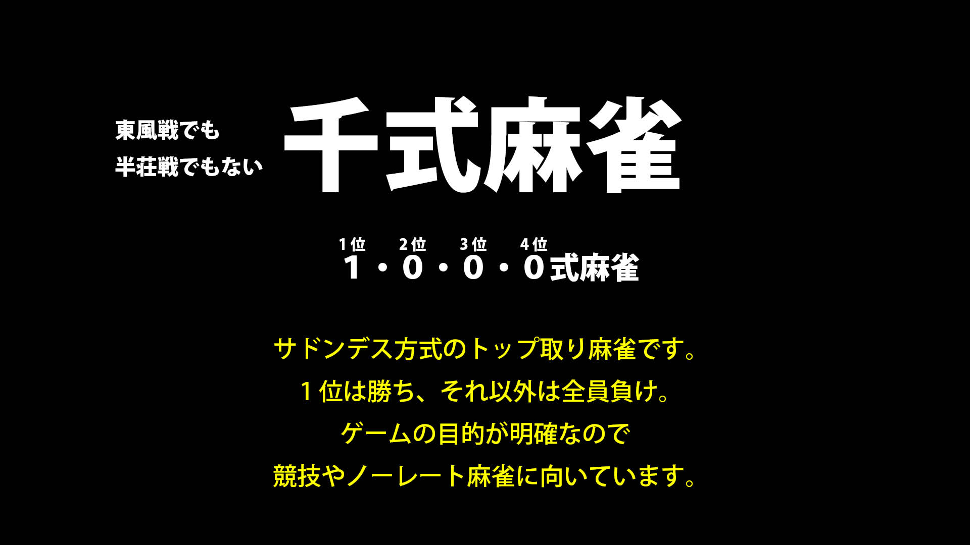 健康麻雀ゆっくり栃木県 ケンコウマージャンユックリ 栃木県 矢板駅 徒歩3分 三麻、フリー、セット、健康麻雀、ノーレート 電話する0287-46-5981 地図 店舗トップ ルール 写真/動画 イベント 求人 クーポン プロ イチオシ ランキング クチコミ イチオシ詳細 イチオシ 1 カンターン麻雀でスムーズ進行・トラブルゼロに 自分のツモ番にポン・ロンする事で進行がとてもスムーズに、従来の80%の試合時間です。 「ポン」「チー」等の発声も不要なので雀荘で起こりがちなトラブルが無くなりました。 初心者も安心して参加出来ます。 イチオシ 2 スリリングなサドンデス戦! 東風戦でも半荘戦でも無い千式麻雀というサドンデス方式のトップ取り麻雀です。 1位は勝ち、それ以外は負け。 ゲームの目的が明確なのでノーレート麻雀に向いています。 どんなに沈んでいても逆転のチャンスがあり、どんなに勝っていても油断出来ない、最後まで退屈しないゲーム展開を楽しんで下さい。 お店のコトを友達に教える Facebook X(旧Twitter) Line Mail お店を評価する 閉店・休業・移転・情報違い報告 クチコミ投稿 報告内容詳細※必須 閉店 休業 移転 情報違い 送信する