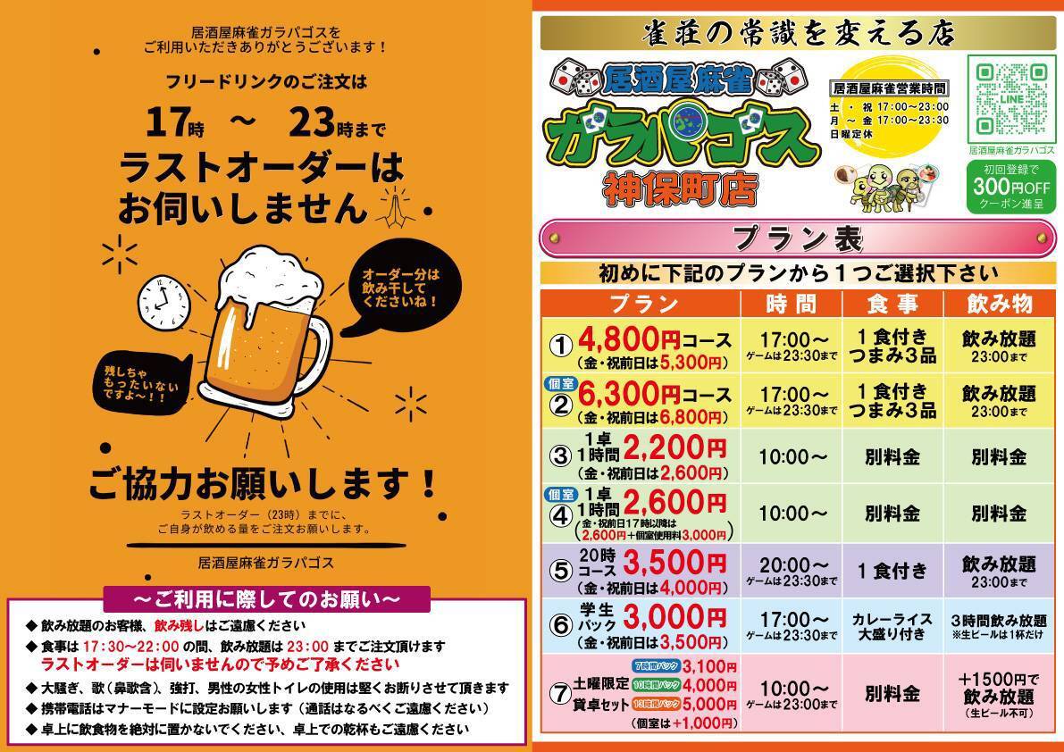 営業内容 四麻、三麻、ノーレート、その他、麻雀教室、健康麻雀、セット