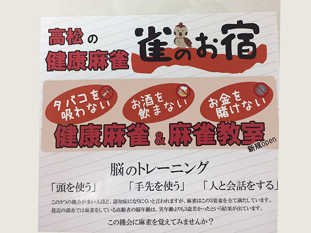 雀のお宿香川県 スズメノオヤド 香川県 瓦町駅 徒歩5分 ノーレート、麻雀教室、健康麻雀 電話する087-807-3193 地図 店舗トップ ルール 写真/動画 イベント 求人 クーポン プロ イチオシ ランキング クチコミ 総合 雀のお宿 3.0 5 12 ? 点数について 12件 詳細 雀荘クチコミの点数概要 クチコミの点数は、総合点数を中心に、全部で11項目あります。 12項目は「雀荘の営業形態についての項目」と「その他の環境についての項目」の2つにわかれます。 総合スコア (計11項目) 営業形態点数 (6項目) 雀荘の営業形態についての点数 フリー セット 健康麻雀 麻雀教室 ノーレート 三麻 その他の環境点数 (5項目) 雀荘の設備、その他の環境についての点数 設備 接客 居心地 CP(コストパフォーマンス)・清潔感 ※麻雀王国雀荘検索のクチコミの点数は、当社独自の基準に基づく評価であり、雀荘の価値を何ら保証するものではあ りません。あくまでの一つの参考としてご活用ください。 雀荘クチコミ点数の算出方法要 クチコミの点数は、「ユーザー評価」に独自のアルゴリズムで掛け合わせて算出しております。 麻雀王国では、日々信頼性の高い点数を追及し、微調整を行っております。 ユーザー評価 個人が付けた点数 (雰囲気、感性、感覚、状況、主観など) フリー3.0 セット3.0 健康麻雀3.0 麻雀教室3.0 ノーレート3.0 三麻3.0 設備 3.0 | 接客 3.0 | 居心地 3.0 | CP(コストパフォーマンス) 3.0 | 清潔感 3.0 全国* 香川県2位 【香川県高松市・瓦町駅】雀のお宿は、ノーレート・麻雀教室・健康麻雀が楽しめる雀荘です。 高松市にオープンした健康麻雀、麻雀教室のお店です♪ 吸わない、飲まない、掛けない 安心安全の麻雀を一緒に楽しみませんか?☆彡 麻雀プロが、どのようなレベルの方にもわかりやすく指導します! 麻雀が初めての方でもご安心ください☆ すでにルール等もご存じで、レベルアップしてみたいという方も大歓迎です(*^-^*) 健康麻雀OPEN対局も、吸わない、飲まない、掛けないで安心して麻雀を楽しめますよ☆ 来店やトップ毎で、ポイントがたまるカードもご用意しております。 皆様のご来店をお待ちしております♪♪ 麻雀教室は要予約ですので、お店までお電話ください!! 続きを見る 閉じる お店のイチオシポイント イチオシ 1 安心して遊べる健康麻雀OPEN対局 タバコを吸わない、お酒を飲まない、お金を賭けない麻雀です。 どなたでも安心して遊べます。 イチオシ 2 麻雀プロが指導する麻雀教室 麻雀初めての方から、レベルアップしたい方まで、楽しく覚えられる麻雀教室です♬ イチオシ 3 ポイントカード、駐車場補助あり 駐車場補助あり(2ゲームに付き100円。最大300円まで) お店のコトを友達に教える Facebook X(旧Twitter) Line Mail お店を評価する 閉店・休業・移転・情報違い報告 クチコミ投稿 報告内容詳細※必須 閉店 休業 移転 情報違い 送信する 最新情報 2019年7月12日(金) イベント お友達紹介サービス☆彡 お友達をご紹介いただくと、ペアで使えるサービス券をプレゼントします(*^-^*) 「ネット予約」&「チェックイン」で 来店人数×100Gもらえる! ログイン ご予約情報入力 来店日※ 2013年12月31日(火) 卓数※ 12345678910卓 予定開始※ 1:00 2:00 3:00 4:00 5:00 6:00 7:00 8:00 9:00 10:00 11:00 12:00 13:00 14:00 15:00 16:00 17:00 18:00 19:00 20:00 21:00 22:00 23:00 24:00 予定終了※ 1:00 2:00 3:00 4:00 5:00 6:00 7:00 8:00 9:00 10:00 11:00 12:00 13:00 14:00 15:00 16:00 17:00 18:00 19:00 20:00 21:00 22:00 23:00 24:00 お名前※ 携帯TEL※ メール※ ルール※ 四麻 三麻 点数※ 25000点 30000点 赤枚数※ 赤5マン01234 赤5ピン01234 赤5ソー01234 その他 チップ 焼鳥 備考 予約する クチコミ 投稿する 雀のお宿 香川県 瓦町駅 とても居心地良く、楽しく打てました。 2023/12/02 (2023/12訪問) ゲスト さんのクチコミ 総合 5.0 雀のお宿 香川県 瓦町駅 初心者でしたが、とても優しく対応してくれました、デビューされたい方におすすめだと思います 2021/12/31 (2021/12訪問) ゲスト さんのクチコミ 総合 5.0 雀のお宿 香川県 瓦町駅 とにかく居心地がよい! 2021/10/30 (2021/10訪問) ゲスト さんのクチコミ 総合 5.0 お店の情報詳細 店名 雀のお宿 住所 〒760-0050 [地図] 香川県高松市亀井町12-4 日の出ビル4F西側 電話 087-807-3193 交通手段 琴電琴平線 瓦町駅 徒歩5分 ことでん瓦待ち喜より徒歩5分、国税局向かい 日の出ビル4F 営業時間 11:30~23:00 [平日] 10:00~23:00 [土日祝] 定休日 火 水 営業内容 ノーレート、麻雀教室、健康麻雀 ゲーム代(フリー) ゲーム代(セット) ゲーム代(健康麻雀) ¥500/般 [打ち放題平日2000円、金土日祝は3000円] ゲーム代(麻雀教室) ¥500/般 [1時間500円 2時間1000円 お気軽にお電話でお問合せください。] その他の料金 駐車場補助あり(2ゲームに付き100円。最大300円まで) オープン日 2019年6月10日 初投稿者 ゲスト お店のサービス・システム・設備 総卓数 5卓 卓種 点数表示付全自動卓×5 サービス フリードリンク、禁煙、ノーレート、パック料金、駐車場、女性スタッフ、学割、軽食無料 システム・設備 ネット環境、女性専用トイレ 備考 関連エリア・