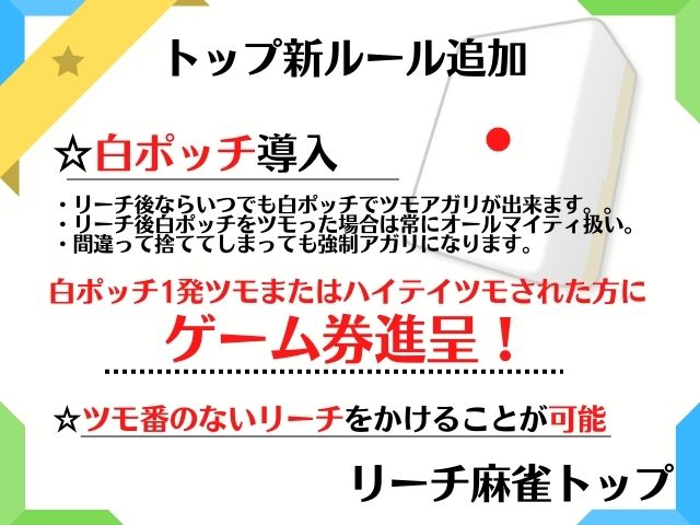麻雀トップ千葉県 マージャントップ 千葉県 稲毛海岸駅 徒歩1分 セット、フリー 電話する043-277-8745 地図 店舗トップ ルール 写真/動画 イベント 求人 クーポン プロ イチオシ ランキング クチコミ 総合 麻雀トップ - 5 0 ? 点数について 0件 詳細 雀荘クチコミの点数概要 クチコミの点数は、総合点数を中心に、全部で11項目あります。 12項目は「雀荘の営業形態についての項目」と「その他の環境についての項目」の2つにわかれます。 総合スコア (計11項目) 営業形態点数 (6項目) 雀荘の営業形態についての点数 フリー セット 健康麻雀 麻雀教室 ノーレート 三麻 その他の環境点数 (5項目) 雀荘の設備、その他の環境についての点数 設備 接客 居心地 CP(コストパフォーマンス)・清潔感 ※麻雀王国雀荘検索のクチコミの点数は、当社独自の基準に基づく評価であり、雀荘の価値を何ら保証するものではあ りません。あくまでの一つの参考としてご活用ください。 雀荘クチコミ点数の算出方法要 クチコミの点数は、「ユーザー評価」に独自のアルゴリズムで掛け合わせて算出しております。 麻雀王国では、日々信頼性の高い点数を追及し、微調整を行っております。 ユーザー評価 個人が付けた点数 (雰囲気、感性、感覚、状況、主観など) フリー- セット- 健康麻雀- 麻雀教室- ノーレート- 三麻- 設備 - | 接客 - | 居心地 - | CP(コストパフォーマンス) - | 清潔感 - フリー ¥600/般 セット ¥1,200/般 ¥800/学 長期契約安心店舗 全国* 千葉県* 現在1人マスターで営業中の為、 ご来店の際はお電話にて店内状況の確認をして頂けますと幸いです。 京葉線稲毛海岸駅から徒歩1分! 駅近でご利用頂きやすいお店です♪ セット様へ 当店一人マスターの為、 飲食、お飲み物持ち込み自由! アルコールも可能です。 (隣にセブンイレブン有り) フリー・セットご新規様のご利用お待ちしております!! リーチ後オールマイティ白ポッチ採用! 白ポッチ1発ツモ、ハイテイツモでゲーム券贈呈!!! 皆様の御来店お待ちしております(^^) 続きを見る 閉じる お店のコトを友達に教える Facebook X(旧Twitter) Line Mail お店を評価する 閉店・休業・移転・情報違い報告 クチコミ投稿 報告内容詳細※必須 閉店 休業 移転 情報違い 送信する 最新情報 2022年7月22日(金) イベント 【五輪は平和の祭典】金色の八萬始めました 【当店は万両派より、おかわり派多数】当店は優しい常連達に愛される「場末雀荘」です!! 「ネット予約」&「チェックイン」で 来店人数×100Gもらえる! ログイン ご予約情報入力 来店日※ 2013年12月31日(火) 卓数※ 12345678910卓 予定開始※ 1:00 2:00 3:00 4:00 5:00 6:00 7:00 8:00 9:00 10:00 11:00 12:00 13:00 14:00 15:00 16:00 17:00 18:00 19:00 20:00 21:00 22:00 23:00 24:00 予定終了※ 1:00 2:00 3:00 4:00 5:00 6:00 7:00 8:00 9:00 10:00 11:00 12:00 13:00 14:00 15:00 16:00 17:00 18:00 19:00 20:00 21:00 22:00 23:00 24:00 お名前※ 携帯TEL※ メール※ ルール※ 四麻 三麻 点数※ 25000点 30000点 赤枚数※ 赤5マン01234 赤5ピン01234 赤5ソー01234 その他 チップ 焼鳥 備考 予約する クチコミ 投稿する お店の情報詳細 店名 麻雀トップ 住所 〒261-0004 [地図] 千葉県千葉市美浜区高洲1-22-10 金谷ビル3F 電話 043-277-8745 交通手段 JR京葉線 稲毛海岸駅 徒歩1分 京葉線稲毛海岸駅から徒歩1分! 営業時間 10:00~24:00 定休日 年中無休 営業内容 セット、フリー ゲーム代(フリー) ¥600/般 [東南戦] ゲーム代(セット) ¥1,200/般 ¥800/学 [1卓1時間あたり] ゲーム代(健康麻雀) ゲーム代(麻雀教室) その他の料金 オープン日 お店のサービス・システム・設備 総卓数 6卓 卓種 点数表示付全自動卓×6全自動配牌卓×6 サービス 駐車場、禁煙、自動配牌卓、フリードリンク システム・設備 ウォシュレット 備考 関連エリア・路線 千葉県の雀荘ランキング 稲毛海岸駅の雀荘ランキング 千葉県の雀荘特集 千葉県千葉市美浜区の雀荘特集 稲毛海岸駅の雀荘特集 お店を利用する 電話する043-277-8745 地図千葉県千葉市美浜区高洲1-22-10金谷ビル3F 店舗トップ ルール 写真/動画 イベント 求人 クーポン プロ イチオシ ランキング ソーシャル [ 管理者ページ ]