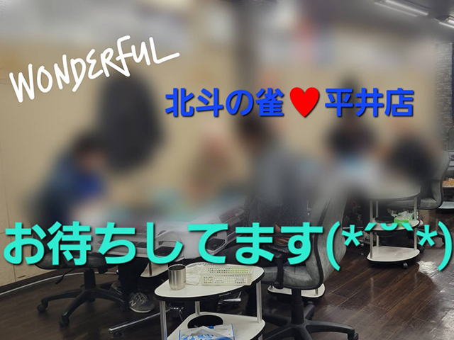 北斗の雀 麻雀の拳東京都 ホクトノジャン マージャンノケン 東京都 平井駅 徒歩1分 三麻、セット、フリー 電話する03-5858-9990 地図 店舗トップ ルール 写真/動画 イベント 求人 クーポン プロ イチオシ ランキング クチコミ 総合 北斗の雀 麻雀の拳 3.0 5 21 ? 点数について 21件 詳細 雀荘クチコミの点数概要 クチコミの点数は、総合点数を中心に、全部で11項目あります。 12項目は「雀荘の営業形態についての項目」と「その他の環境についての項目」の2つにわかれます。 総合スコア (計11項目) 営業形態点数 (6項目) 雀荘の営業形態についての点数 フリー セット 健康麻雀 麻雀教室 ノーレート 三麻 その他の環境点数 (5項目) 雀荘の設備、その他の環境についての点数 設備 接客 居心地 CP(コストパフォーマンス)・清潔感 ※麻雀王国雀荘検索のクチコミの点数は、当社独自の基準に基づく評価であり、雀荘の価値を何ら保証するものではあ りません。あくまでの一つの参考としてご活用ください。 雀荘クチコミ点数の算出方法要 クチコミの点数は、「ユーザー評価」に独自のアルゴリズムで掛け合わせて算出しております。 麻雀王国では、日々信頼性の高い点数を追及し、微調整を行っております。 ユーザー評価 個人が付けた点数 (雰囲気、感性、感覚、状況、主観など) フリー3.0 セット3.0 健康麻雀3.0 麻雀教室3.0 ノーレート3.0 三麻3.0 設備 3.0 | 接客 3.0 | 居心地 3.0 | CP(コストパフォーマンス) 3.0 | 清潔感 3.0 フリー ¥400/般 ¥300/学 セット ¥1,400/般 北斗の雀 全国* 東京都* ★☆もともとお安いゲーム代、ご新規さまは1ヶ月間、さらに半額にしちゃいます!☆★※1日10回以上ご遊戯のお客様が対象となります。 ※ゲスト来店がある日はご新規様割はなしになります 2020年11月、平井駅徒歩30秒の立地に3人麻雀のお店がオープン♪ ✨北斗来店スタンプカード✨ 来店で1個 連続来店で+1個 スタンプ5個貯まると1,000Pプレゼント💐 最短3日で貯まっちゃう⁉️ 女性割 学生割 ゲーム数×100円 ただいまスタッフ大募集中‼️ ・ゲーム代フルバックに神改定🔥🔥🔥 ・業績に応じてボーナスあり! フリーもセットもお得なお店です! 赤牌のほか、オリジナルのレインボー5p・5sもあり、ドキドキの3人麻雀が楽しめます♪ 3人麻雀大好きな方も、初めての方も、必ず楽しんで帰っていただけます('◇')ゞ お待ちしております!! セットのお客様も大歓迎です♪ セットのお客様は3人打ち、4人打ちどちらも対応可能となっています ゴッドハンド、特殊牌など気軽にお伝えください♪ 続きを見る 閉じる お店のイチオシポイント イチオシ 1 新規のお客様G代1ヶ月間ハーフバックの激アツサービス!※1日10回以上ご遊戯のお客様が対象となります。 【フリーのお客様】 ご新規さまはなんと! 1か月間ゲーム代を半額にしちゃいます!!!※1日10回以上ご遊戯のお客様が対象となります。 【セットのお客様】 1卓1時間1200円です ドリンクバーご利用の場合はお一人様200円頂きます イチオシ 2 JR平井駅南口30秒の好立地で通いやすい♪ JR総武線の平井駅から徒歩30秒の好立地で、平井駅が最寄の方だけでなく、帰り道やちょっと寄り道にも便利~! お店のコトを友達に教える Facebook X(旧Twitter) Line Mail お店を評価する 閉店・休業・移転・情報違い報告 クチコミ投稿 報告内容詳細※必須 閉店 休業 移転 情報違い 送信する 「ネット予約」&「チェックイン」で 来店人数×100Gもらえる! ログイン ご予約情報入力 来店日※ 2013年12月31日(火) 卓数※ 12345678910卓 予定開始※ 1:00 2:00 3:00 4:00 5:00 6:00 7:00 8:00 9:00 10:00 11:00 12:00 13:00 14:00 15:00 16:00 17:00 18:00 19:00 20:00 21:00 22:00 23:00 24:00 予定終了※ 1:00 2:00 3:00 4:00 5:00 6:00 7:00 8:00 9:00 10:00 11:00 12:00 13:00 14:00 15:00 16:00 17:00 18:00 19:00 20:00 21:00 22:00 23:00 24:00 お名前※ 携帯TEL※ メール※ ルール※ 四麻 三麻 点数※ 25000点 30000点 赤枚数※ 赤5マン01234 赤5ピン01234 赤5ソー01234 その他 チップ 焼鳥 備考 予約する クチコミ 投稿する 北斗の雀 麻雀の拳 東京都 平井駅 初心者でも楽しく遊べました!和気あいあいとしたお店でした! 2024/04/01 (2024/04訪問) ゲスト さんのクチコミ 総合 5.0 北斗の雀 麻雀の拳 東京都 平井駅 良い店 2024/01/03 (2024/01訪問) ゲスト さんのクチコミ 総合 5.0 北斗の雀 麻雀の拳 東京都 平井駅 店員さんの愛想が良かったです 2023/12/17 (2023/12訪問) ゲスト さんのクチコミ 総合 5.0 お店独自のHP・ソーシャル X (旧twitter) お店の情報詳細 店名 北斗の雀 麻雀の拳 住所 〒132-0035 [地図] 東京都江戸川区平井4丁目12-1 立花屋平井駅前ビル3階 電話 03-5858-9990 交通手段 JR中央・総武線 平井駅 徒歩1分 平井駅南口から出て、交番を抜けた先のマクドナルドの左隣のビル3階です♪ 営業時間 11:00~ラスト 定休日 年中無休 営業内容 三麻、セット、フリー ゲーム代(フリー) ¥400/般 ¥300/学 [三人麻雀/1回] [女性割:300円/1回 学生割:300円/1回] ゲーム代(セット) ¥1,400/般 [1卓1時間あたり1400円頂戴いたします。 ドリンク飲み放題付] ゲーム代(健康麻雀) ゲーム代(麻雀教室) その他の料金 オープン