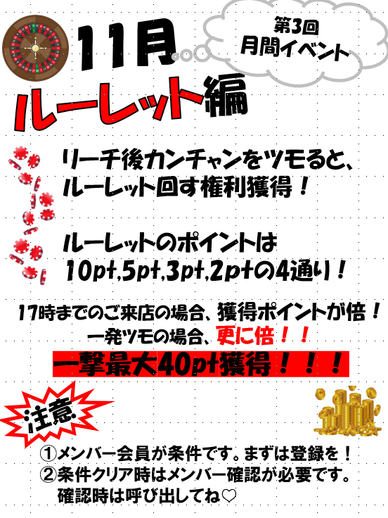 麻雀515千葉県 マージャンゴーイチゴ 千葉県 京成成田駅 徒歩30秒 四麻、三麻、セット、フリー 電話する047-694-5155 地図 店舗トップ ルール 写真/動画 イベント 求人 クーポン プロ イチオシ ランキング クチコミ 総合 麻雀515 3.0 5 1 ? 点数について 1件 詳細 雀荘クチコミの点数概要 クチコミの点数は、総合点数を中心に、全部で11項目あります。 12項目は「雀荘の営業形態についての項目」と「その他の環境についての項目」の2つにわかれます。 総合スコア (計11項目) 営業形態点数 (6項目) 雀荘の営業形態についての点数 フリー セット 健康麻雀 麻雀教室 ノーレート 三麻 その他の環境点数 (5項目) 雀荘の設備、その他の環境についての点数 設備 接客 居心地 CP(コストパフォーマンス)・清潔感 ※麻雀王国雀荘検索のクチコミの点数は、当社独自の基準に基づく評価であり、雀荘の価値を何ら保証するものではあ りません。あくまでの一つの参考としてご活用ください。 雀荘クチコミ点数の算出方法要 クチコミの点数は、「ユーザー評価」に独自のアルゴリズムで掛け合わせて算出しております。 麻雀王国では、日々信頼性の高い点数を追及し、微調整を行っております。 ユーザー評価 個人が付けた点数 (雰囲気、感性、感覚、状況、主観など) フリー3.0 セット3.0 健康麻雀- 麻雀教室- ノーレート- 三麻3.0 設備 3.0 | 接客 3.0 | 居心地 3.0 | CP(コストパフォーマンス) 3.0 | 清潔感 3.0 フリー ¥700/般 セット ¥1,400/般 ¥1,200/学 全国* 千葉県15位 ✨✨2024年8月1日新規オープン!!!✨✨ 成田駅徒歩1分の超好立地!!! 全卓レックス3!! 常駐女性スタッフ!!(プロ志望) アットホームな雀荘で楽しく麻雀!! オーソドックスな4人麻雀 関東ありあり3人麻雀 自分好みのルールを選び対局いただけます★★ 新システム導入★★ スマホ一つで成績&ポイント管理が可能!! 麻雀プロ育成中・・・ 麻雀が強くなりたい方、好きな方は一緒に働きませんか? バイト、常勤特典あり!! 『スタッフ大募集中』 詳細は求人ページ又は直接お電話ください!! 月間イベント開催中!! ポイント大量獲得し店内飲食やAmazon商品に交換可能!! 登録は約1分!店内掲示か店長Xからよろしくお願いします! 続きを見る 閉じる お店のイチオシポイント イチオシ 1 Mリーグでも採用されていますレックス3導入 全卓レックス3でセットもフリーも快適に遊べます!!学生セット割引あり!! イチオシ 2 種類豊富なフリードリンク セット様も10種類以上のドリンク飲み放題&セルフサービス!! 有料のドリンク&フードメニューもあります。 イチオシ 3 京成成田駅徒歩30秒!! JR成田駅から徒歩3分!! 駅近&国道51号からも近くお車でも心配なし!! お店のコトを友達に教える Facebook X(旧Twitter) Line Mail お店を評価する 閉店・休業・移転・情報違い報告 クチコミ投稿 報告内容詳細※必須 閉店 休業 移転 情報違い 送信する 「ネット予約」&「チェックイン」で 来店人数×100Gもらえる! ログイン ご予約情報入力 来店日※ 2013年12月31日(火) 卓数※ 12345678910卓 予定開始※ 1:00 2:00 3:00 4:00 5:00 6:00 7:00 8:00 9:00 10:00 11:00 12:00 13:00 14:00 15:00 16:00 17:00 18:00 19:00 20:00 21:00 22:00 23:00 24:00 予定終了※ 1:00 2:00 3:00 4:00 5:00 6:00 7:00 8:00 9:00 10:00 11:00 12:00 13:00 14:00 15:00 16:00 17:00 18:00 19:00 20:00 21:00 22:00 23:00 24:00 お名前※ 携帯TEL※ メール※ ルール※ 四麻 三麻 点数※ 25000点 30000点 赤枚数※ 赤5マン01234 赤5ピン01234 赤5ソー01234 その他 チップ 焼鳥 備考 予約する クチコミ 投稿する 麻雀515 千葉県 京成成田駅 非常に接客もよく和やかな雰囲気で打てる雀荘 2024/08/26 (2024/08訪問) ゲスト さんのクチコミ 総合 5.0 お店独自のHP・ソーシャル X (旧twitter) お店の情報詳細 店名 麻雀515 住所 〒286-0033 [地図] 千葉県成田市花崎町815-5 カキヌマビル3F 電話 047-694-5155 交通手段 京成本線 京成成田駅 徒歩30秒 JR成田線 成田駅 徒歩3分 営業時間 14:00~ラスト 定休日 年中無休 営業内容 四麻、三麻、セット、フリー ゲーム代(フリー) ¥700/般 [東南戦] ¥400/般 [三人麻雀] ゲーム代(セット) ¥1,400/般 ¥1,200/学 [フリードリンク] ゲーム代(健康麻雀) ゲーム代(麻雀教室) その他の料金 オープン日 初投稿者 ゲスト お店のサービス・システム・設備 総卓数 6卓 卓種 全自動配牌卓×6 サービス 学割、女性スタッフ、自動配牌卓、フリードリンク システム・設備 空気清浄機、ネット環境、PC、タブレット、スマホ 備考 関連エリア・路線 千葉県の雀荘ランキング 京成成田駅の雀荘ランキング 成田駅の雀荘ランキング 千葉県の雀荘特集 千葉県成田市の雀荘特集 京成成田駅の雀荘特集 成田駅の雀荘特集 お店を利用する 電話する047-694-5155 地図千葉県成田市花崎町815-5カキヌマビル3F 店舗トップ ルール 写真/動画 イベント 求人 クーポン プロ イチオシ ランキング ソーシャル [ 管理者ページ ]