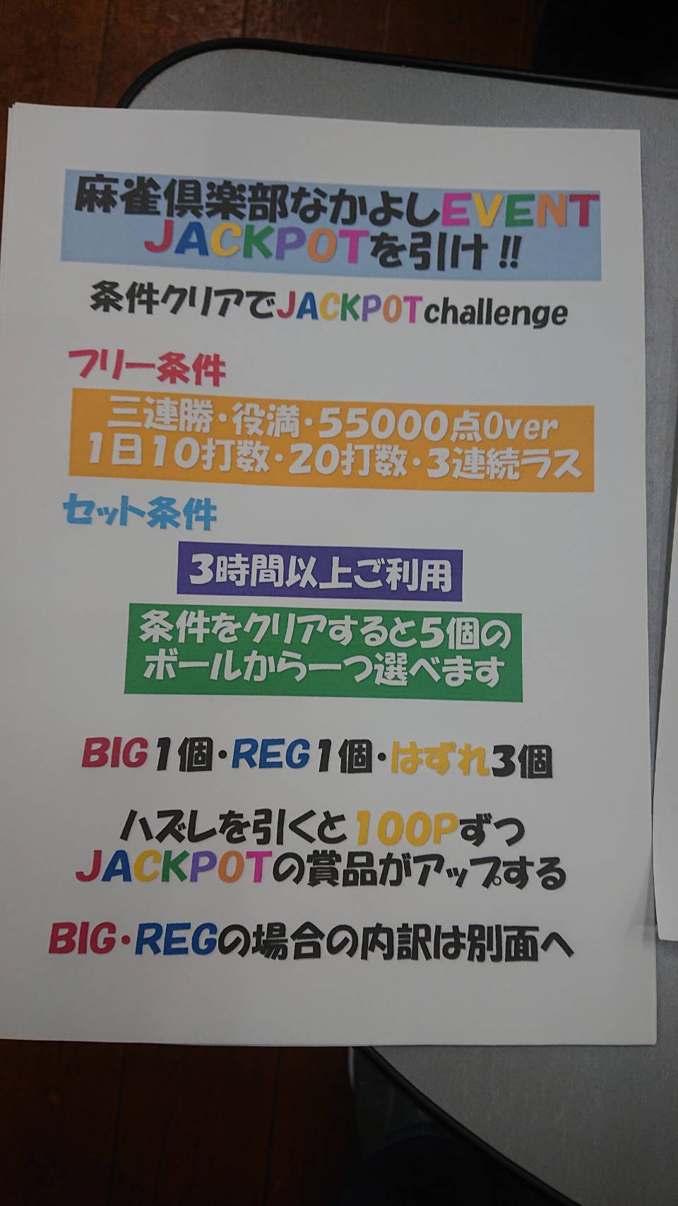麻雀倶楽部 なかよし福島県 マージャンクラブナカヨシ 福島県 福島駅 徒歩5分 四麻、セット、フリー 電話する024-522-5727 地図 店舗トップ ルール 写真/動画 イベント 求人 クーポン プロ イチオシ ランキング クチコミ 総合 麻雀倶楽部 なかよし - 5 0 ? 点数について 0件 詳細 雀荘クチコミの点数概要 クチコミの点数は、総合点数を中心に、全部で11項目あります。 12項目は「雀荘の営業形態についての項目」と「その他の環境についての項目」の2つにわかれます。 総合スコア (計11項目) 営業形態点数 (6項目) 雀荘の営業形態についての点数 フリー セット 健康麻雀 麻雀教室 ノーレート 三麻 その他の環境点数 (5項目) 雀荘の設備、その他の環境についての点数 設備 接客 居心地 CP(コストパフォーマンス)・清潔感 ※麻雀王国雀荘検索のクチコミの点数は、当社独自の基準に基づく評価であり、雀荘の価値を何ら保証するものではあ りません。あくまでの一つの参考としてご活用ください。 雀荘クチコミ点数の算出方法要 クチコミの点数は、「ユーザー評価」に独自のアルゴリズムで掛け合わせて算出しております。 麻雀王国では、日々信頼性の高い点数を追及し、微調整を行っております。 ユーザー評価 個人が付けた点数 (雰囲気、感性、感覚、状況、主観など) フリー- セット- 健康麻雀- 麻雀教室- ノーレート- 三麻- 設備 - | 接客 - | 居心地 - | CP(コストパフォーマンス) - | 清潔感 - フリー ¥600/般 セット ¥1,600/般 全国* 福島県11位 【福島県福島市・福島駅】麻雀倶楽部 なかよしは、四麻・セット・フリーが楽しめる雀荘です。 福島駅徒歩5分の好立地!! ✨『お菓子食べ放題』✨ セットもフリーのお客様もお菓子が食べ放題 アットホームな雰囲気で、老若男女問わず安心して麻雀が楽しめます。 是非皆様のご来店お待ちしております。 ・フリードリンク ・Wi-Fi完備 ・スマホ携帯充電可 ・空気清浄機 続きを見る 閉じる お店のイチオシポイント イチオシ 1 ✨お菓子食べ放題✨ なんとセット、フリーどちらのお客様もお菓子が食べ放題です イチオシ 2 アットホームなお店で皆様安心して麻雀出来ます お店のコトを友達に教える Facebook X(旧Twitter) Line Mail お店を評価する 閉店・休業・移転・情報違い報告 クチコミ投稿 報告内容詳細※必須 閉店 休業 移転 情報違い 送信する 最新情報 2025年12月11日(木) イベント ジャックポットチャレンジ!! 超お得なジャックポットチャレンジ開催中!! 詳細は店舗又はお写真にてご確認ください。 「ネット予約」&「チェックイン」で 来店人数×100Gもらえる! ログイン ご予約情報入力 来店日※ 2013年12月31日(火) 卓数※ 12345678910卓 予定開始※ 1:00 2:00 3:00 4:00 5:00 6:00 7:00 8:00 9:00 10:00 11:00 12:00 13:00 14:00 15:00 16:00 17:00 18:00 19:00 20:00 21:00 22:00 23:00 24:00 予定終了※ 1:00 2:00 3:00 4:00 5:00 6:00 7:00 8:00 9:00 10:00 11:00 12:00 13:00 14:00 15:00 16:00 17:00 18:00 19:00 20:00 21:00 22:00 23:00 24:00 お名前※ 携帯TEL※ メール※ ルール※ 四麻 三麻 点数※ 25000点 30000点 赤枚数※ 赤5マン01234 赤5ピン01234 赤5ソー01234 その他 チップ 焼鳥 備考 予約する クチコミ 投稿する お店の情報詳細 店名 麻雀倶楽部 なかよし 住所 〒960-8034 [地図] 福島県福島市置賜町5-3 第3二瓶ビル3F 電話 024-522-5727 交通手段 阿武隈急行線 福島駅 徒歩5分 JR東北本線(黒磯~利府・盛岡) 福島駅 徒歩5分 営業時間 17:00~ラスト [平日] 12:00~ラスト [土・祝 日曜日は9時~営業中] 定休日 月 営業内容 四麻、セット、フリー ゲーム代(フリー) ¥600/般 [東南戦/1回] ゲーム代(セット) ¥1,600/般 ゲーム代(健康麻雀) ゲーム代(麻雀教室) その他の料金 オープン日 お店のサービス・システム・設備 総卓数 4卓 卓種 全自動配牌卓×4 サービス フリードリンク、自動配牌卓 システム・設備 PC、タブレット、スマホ、ネット環境、空気清浄機 備考 関連エリア・路線 福島県の雀荘ランキング 福島駅の雀荘ランキング 福島駅の雀荘ランキング 福島県の雀荘特集 福島県福島市の雀荘特集 福島駅の雀荘特集 福島駅の雀荘特集 お店を利用する 電話する024-522-5727 地図福島県福島市置賜町5-3第3二瓶ビル3F [ 管理者ページ ]