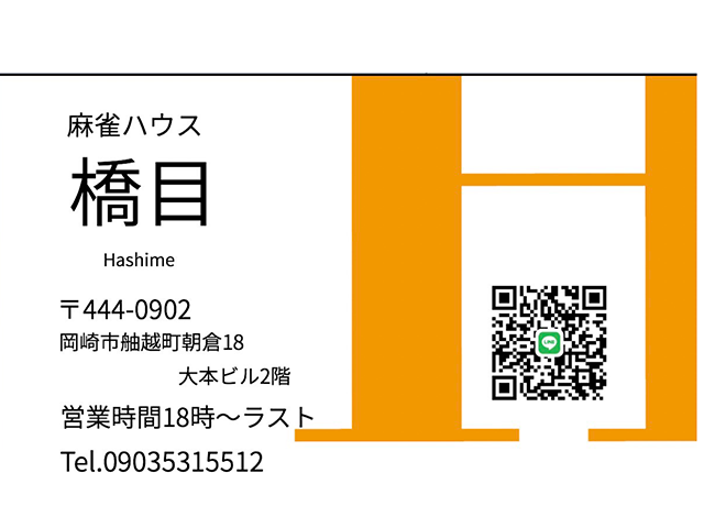 麻雀 橋目愛知県 マージャンハシメ 愛知県 北岡崎駅 徒歩15分 三麻、セット、フリー 電話する090-3531-5512 地図 店舗トップ ルール 写真/動画 イベント 求人 クーポン プロ イチオシ ランキング クチコミ 総合 麻雀 橋目 3.0 5 3 ? 点数について 3件 詳細 雀荘クチコミの点数概要 クチコミの点数は、総合点数を中心に、全部で11項目あります。 12項目は「雀荘の営業形態についての項目」と「その他の環境についての項目」の2つにわかれます。 総合スコア (計11項目) 営業形態点数 (6項目) 雀荘の営業形態についての点数 フリー セット 健康麻雀 麻雀教室 ノーレート 三麻 その他の環境点数 (5項目) 雀荘の設備、その他の環境についての点数 設備 接客 居心地 CP(コストパフォーマンス)・清潔感 ※麻雀王国雀荘検索のクチコミの点数は、当社独自の基準に基づく評価であり、雀荘の価値を何ら保証するものではあ りません。あくまでの一つの参考としてご活用ください。 雀荘クチコミ点数の算出方法要 クチコミの点数は、「ユーザー評価」に独自のアルゴリズムで掛け合わせて算出しております。 麻雀王国では、日々信頼性の高い点数を追及し、微調整を行っております。 ユーザー評価 個人が付けた点数 (雰囲気、感性、感覚、状況、主観など) フリー3.0 セット3.0 健康麻雀- 麻雀教室- ノーレート- 三麻3.0 設備 3.0 | 接客 3.0 | 居心地 3.0 | CP(コストパフォーマンス) 3.0 | 清潔感 3.0 フリー ¥500/般 セット ¥1,200/般 全国* 愛知県* 【愛知県岡崎市・北岡崎駅】麻雀 橋目は、三麻・セット・フリーが楽しめる雀荘です。 ✨2024年6月新規オープン✨ 北岡崎駅徒歩15分さらに無料駐車場も完備でアクセス抜群!! 綺麗で落ち着いた雰囲気で麻雀を楽しめます。 新規のお客様は次回3ゲーム無料☆ お電話いただいた方には送迎も実施しております。 ご連絡お待ちしております。 アイコスの貸し出しも行っています。 是非皆様のご来店お待ちしております。 ・フリードリンク ・無料駐車場 ・スマホ携帯充電可 ・空気清浄機 続きを見る 閉じる お店のイチオシポイント イチオシ 1 送迎してます!!! お電話いただいたら送迎行っております。 ご相談ください! イチオシ 2 白ポッチ採用してます。 イチオシ 3 アイコスの貸し出ししてます。 お店のコトを友達に教える Facebook X(旧Twitter) Line Mail お店を評価する 閉店・休業・移転・情報違い報告 クチコミ投稿 報告内容詳細※必須 閉店 休業 移転 情報違い 送信する 最新情報 2025年11月14日(金) イベント 新規のお客様次回無料券プレゼント 3ゲーム無料券プレゼント 「ネット予約」&「チェックイン」で 来店人数×100Gもらえる! ログイン ご予約情報入力 来店日※ 2013年12月31日(火) 卓数※ 12345678910卓 予定開始※ 1:00 2:00 3:00 4:00 5:00 6:00 7:00 8:00 9:00 10:00 11:00 12:00 13:00 14:00 15:00 16:00 17:00 18:00 19:00 20:00 21:00 22:00 23:00 24:00 予定終了※ 1:00 2:00 3:00 4:00 5:00 6:00 7:00 8:00 9:00 10:00 11:00 12:00 13:00 14:00 15:00 16:00 17:00 18:00 19:00 20:00 21:00 22:00 23:00 24:00 お名前※ 携帯TEL※ メール※ ルール※ 四麻 三麻 点数※ 25000点 30000点 赤枚数※ 赤5マン01234 赤5ピン01234 赤5ソー01234 その他 チップ 焼鳥 備考 予約する クチコミ 投稿する 麻雀 橋目 愛知県 北岡崎駅 ここの塩焼きそばめちゃくちゃ美味しいです。アニキ 2025/04/22 (2025/04訪問) ゲスト さんのクチコミ 総合 5.0 麻雀 橋目 愛知県 北岡崎駅 三麻のルールも面白い。アニキ 2024/07/10 (2024/07訪問) ゲスト さんのクチコミ 総合 4.0 麻雀 橋目 愛知県 北岡崎駅 店員さんが面白い 2024/07/08 (2024/07訪問) ゲスト さんのクチコミ 総合 4.0 お店の情報詳細 店名 麻雀 橋目 住所 〒444-0902 [地図] 愛知県岡崎市舳越町朝倉18 大本ビル2階 電話 090-3531-5512 交通手段 愛知環状鉄道線 北岡崎駅 徒歩15分 営業時間 18:00~ラスト 定休日 不定休 営業内容 三麻、セット、フリー ゲーム代(フリー) ¥500/般 [三人麻雀/1回] ¥400/般 [三人麻雀/1回] ゲーム代(セット) ¥1,200/般 [別途フリードリンク300円] ゲーム代(健康麻雀) ゲーム代(麻雀教室) その他の料金 オープン日 2024年6月15日 初投稿者 ゲスト お店のサービス・システム・設備 総卓数 3卓 卓種 点数表示付全自動卓×3 サービス フリードリンク、パック料金、駐車場 システム・設備 PC、タブレット、スマホ、空気清浄機 備考 関連エリア・路線 愛知県の雀荘ランキング 北岡崎駅の雀荘ランキング 愛知県の雀荘特集 愛知県岡崎市の雀荘特集 北岡崎駅の雀荘特集 お店を利用する 電話する090-3531-5512 地図愛知県岡崎市舳越町朝倉18大本ビル2階 [ 管理者ページ ]