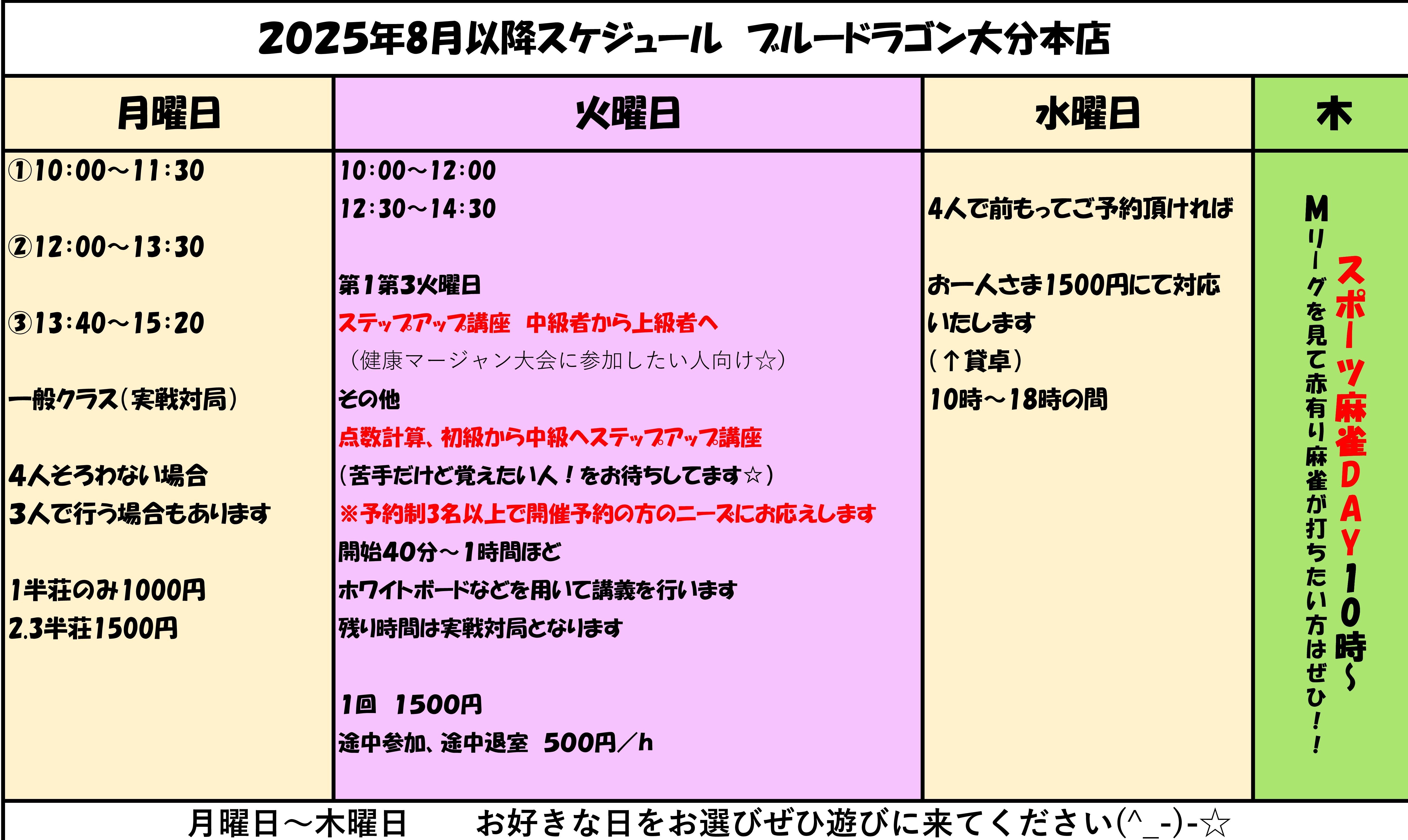 [健康マージャンの方は平日格安で受付しております。お問い合わせください。]