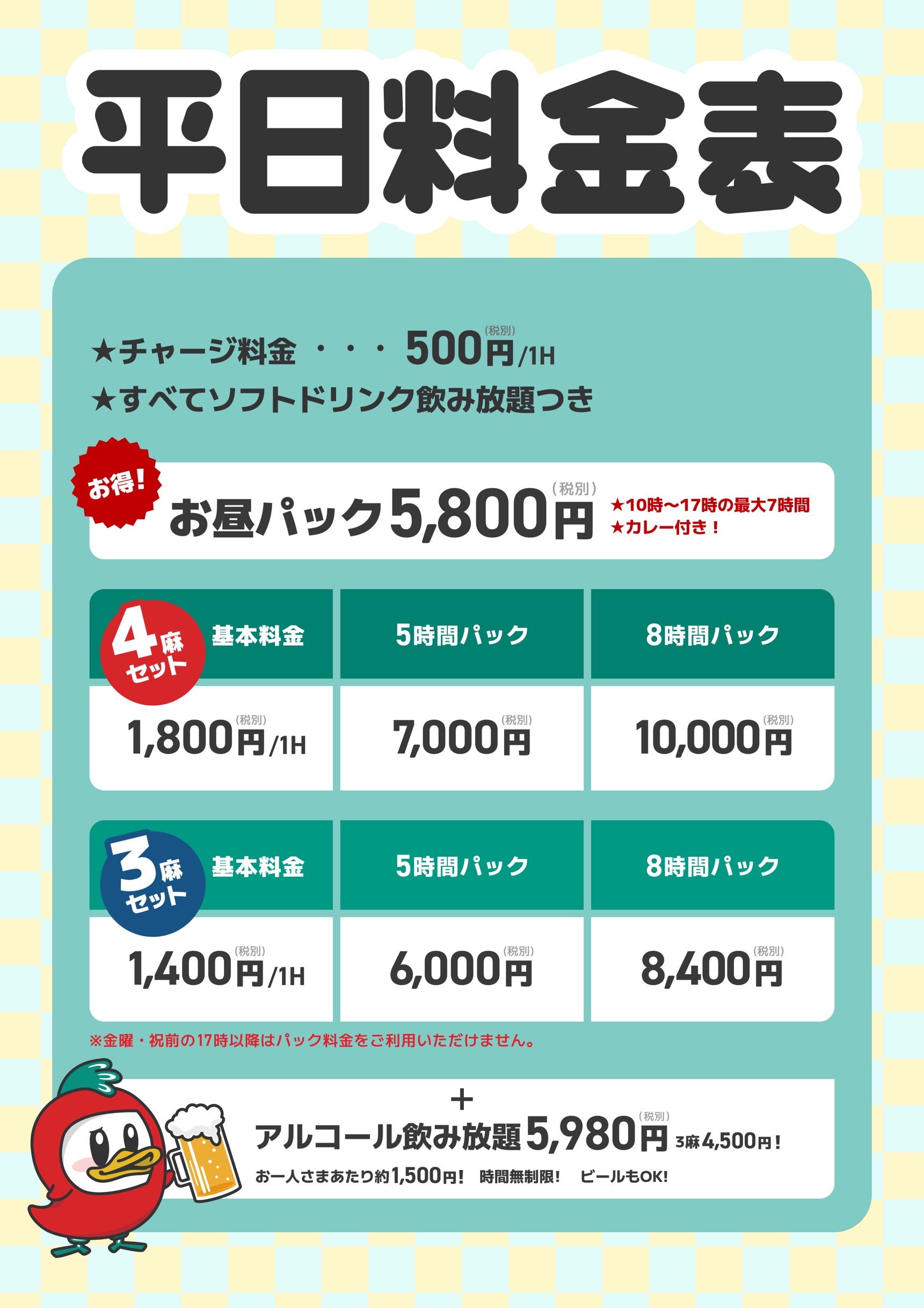まぁじゃんMAP 新橋店東京都 マァジャンマップ シンバシテン 東京都 新橋駅 徒歩5分 セット 電話する03-6273-3600 地図 店舗トップ ルール 写真/動画 イベント 求人 クーポン プロ イチオシ ランキング クチコミ 総合 まぁじゃんMAP 新橋店 3.0 5 7 ? 点数について 7件 詳細 雀荘クチコミの点数概要 クチコミの点数は、総合点数を中心に、全部で11項目あります。 12項目は「雀荘の営業形態についての項目」と「その他の環境についての項目」の2つにわかれます。 総合スコア (計11項目) 営業形態点数 (6項目) 雀荘の営業形態についての点数 フリー セット 健康麻雀 麻雀教室 ノーレート 三麻 その他の環境点数 (5項目) 雀荘の設備、その他の環境についての点数 設備 接客 居心地 CP(コストパフォーマンス)・清潔感 ※麻雀王国雀荘検索のクチコミの点数は、当社独自の基準に基づく評価であり、雀荘の価値を何ら保証するものではあ りません。あくまでの一つの参考としてご活用ください。 雀荘クチコミ点数の算出方法要 クチコミの点数は、「ユーザー評価」に独自のアルゴリズムで掛け合わせて算出しております。 麻雀王国では、日々信頼性の高い点数を追及し、微調整を行っております。 ユーザー評価 個人が付けた点数 (雰囲気、感性、感覚、状況、主観など) フリー- セット3.0 健康麻雀- 麻雀教室- ノーレート- 三麻- 設備 3.0 | 接客 3.0 | 居心地 3.0 | CP(コストパフォーマンス) 3.0 | 清潔感 3.0 セット ¥450/般 MAPグループ 長期契約安心店舗 全国* 東京都* 【東京都港区・新橋駅】まぁじゃんMAP 新橋店は、セットが楽しめる雀荘です。 🚂 まぁじゃんMAP 新橋店 🚂 ⭐️ 完全個室あり(2卓) 接待・貸切大会対応可 ※個室料 ¥5,000/日 ✨ 土日祝パックが超お得! 👉 1卓 1h ¥1,100〜※パック適用後価格 🌈 新サービス ・3人麻雀:1卓 1h ¥1,400(パックあり) ⭐️平日限定お昼パック 10〜17時 最大7時間 ¥5,800(税別) ▶ ドリンク飲放題+カレー付き🍛 🍴 店内仕込みの手作り料理 🍺 アルコール飲み放題プランあり 💚 LINE公式アカウント配信中 定期&ゲリラクーポンが激アツ🔥 🪟 大きな窓で換気◎ 清潔な店内✨ 📞 ご予約・空き状況は電話 or LINEで! ★ 黒で統一された高級感ある綺麗な店内 ★ 内装工事済み・全卓最新アモスレックス導入 ★ 手作りの食事&豊富なドリンクをご用意 ★ 個室あり(2卓) 接待・貸切大会対応可 ※個室料 ¥5,000/日 ★ ホール全9卓(全卓 最新アルティマ卓) ★ お支払いは現金のみ 続きを見る 閉じる お店のイチオシポイント イチオシ 1 食事は全て店内手作り😳❣️ なんといっても!味自慢のご飯! 作りたてあつあつです♡ 🍻アルコール飲み放題プラン🍻も ぜひご利用下さい✨ イチオシ 2 完全個室完備💺 完全個室 接待やタバコが苦手な方、静かに麻雀を打ちたい方にオススメです。 最大2卓までご利用いただけます。 ※別途個室料かかります(¥5000/日) イチオシ 3 無料の会員登録でずーーーーっとお得✌️ ★会員登録制のお店★ 当店は会員登録制(登録無料)です。 お手持ちのフェリカカード(ICカード)が会員証に! お得なパックが会員様限定でご利用頂けます! ※登録は店舗にて承ります お店のコトを友達に教える Facebook X(旧Twitter) Line Mail お店を評価する 閉店・休業・移転・情報違い報告 クチコミ投稿 報告内容詳細※必須 閉店 休業 移転 情報違い 送信する 最新情報 2026年1月26日(月) イベント ⭐️ボトルウイスキーが仲間入り⭐️ 今までとは違うスタイルを取り入れたボトルウイスキー🥃 ウイスキー好きが選ぶおすすめのウイスキーを ・アメリカ ・スコットランド ・アイルランド ・カナダ ・日本 の5カ国から選出されました🎌 みんな違ってみんないい!! お気に入りの一品を見つけてみてください🚀⭐️ 「ネット予約」&「チェックイン」で 来店人数×100Gもらえる! ログイン ご予約情報入力 来店日※ 2013年12月31日(火) 卓数※ 12345678910卓 予定開始※ 1:00 2:00 3:00 4:00 5:00 6:00 7:00 8:00 9:00 10:00 11:00 12:00 13:00 14:00 15:00 16:00 17:00 18:00 19:00 20:00 21:00 22:00 23:00 24:00 予定終了※ 1:00 2:00 3:00 4:00 5:00 6:00 7:00 8:00 9:00 10:00 11:00 12:00 13:00 14:00 15:00 16:00 17:00 18:00 19:00 20:00 21:00 22:00 23:00 24:00 お名前※ 携帯TEL※ メール※ ルール※ 四麻 三麻 点数※ 25000点 30000点 赤枚数※ 赤5マン01234 赤5ピン01234 赤5ソー01234 その他 チップ 焼鳥 備考 予約する クチコミ 投稿する まぁじゃんMAP 新橋店 東京都 新橋駅 男性スタッフもいたが良いお店。土曜の予約が取り辛いのが難点かな。 LINEで予約できるのはいいね。 2023/06/21 (2023/06訪問) ゲスト さんのクチコミ 総合 5.0 まぁじゃんMAP 新橋店 東京都 新橋駅 接客良し、設備良し、値段良し、ご飯美味!最高のお店見つけました♪カードも使えるしリピート確定です! 2022/08/22 (2022/08訪問) ゲスト さんのクチコミ 総合 5.0 まぁじゃんMAP 新橋店 東京都 新橋駅 女性の従業員さんだけの雰囲気の良いセット店。とにかくご飯が美味しい! 2022/08/22 (2022/08訪問) ゲスト さんのクチコミ 総合 5.0 お店独自のHP・ソーシャル 自社HP 自社Blog お店の情報詳細 店