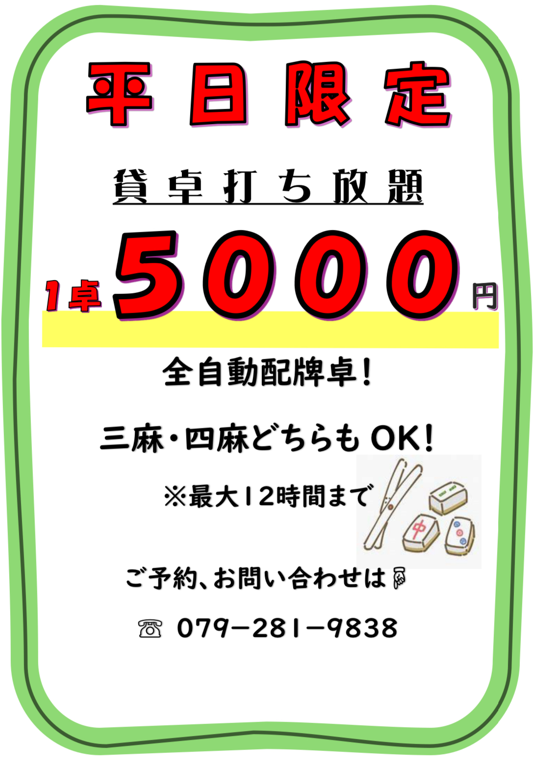 セット、健康麻雀、麻雀教室、ノーレート、フリー、四麻 |