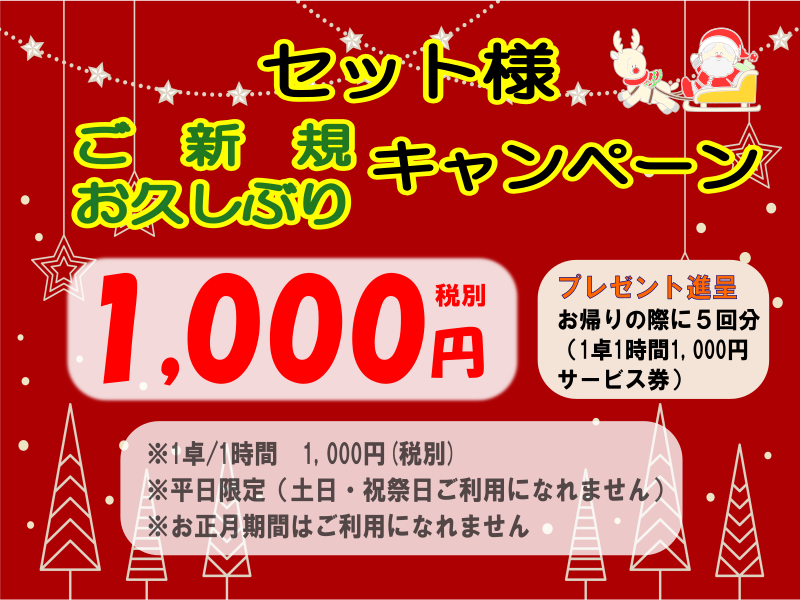 学 割 660円(税込) / 1時間(1卓・3人以上)